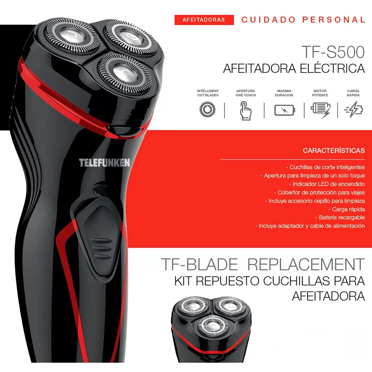 Afeitadora Eléctrica TELEFUNKEN TF-S500 – Con Recortadora – Diseño de Viaje