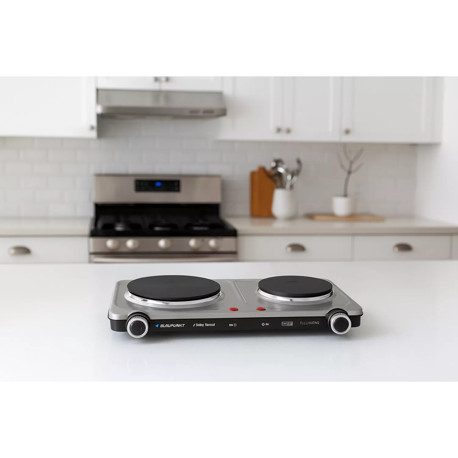 El Anafe Eléctrico Doble Blaupunkt BP-AI12900 es la solución perfecta para quienes buscan practicidad, potencia y diseño moderno en la cocina. Con una potencia total de 2400W distribuidos en dos placas de acero inoxidable (1575W y 825W), ofrece un rendimiento ideal tanto para el uso diario como para espacios reducidos o de apoyo.