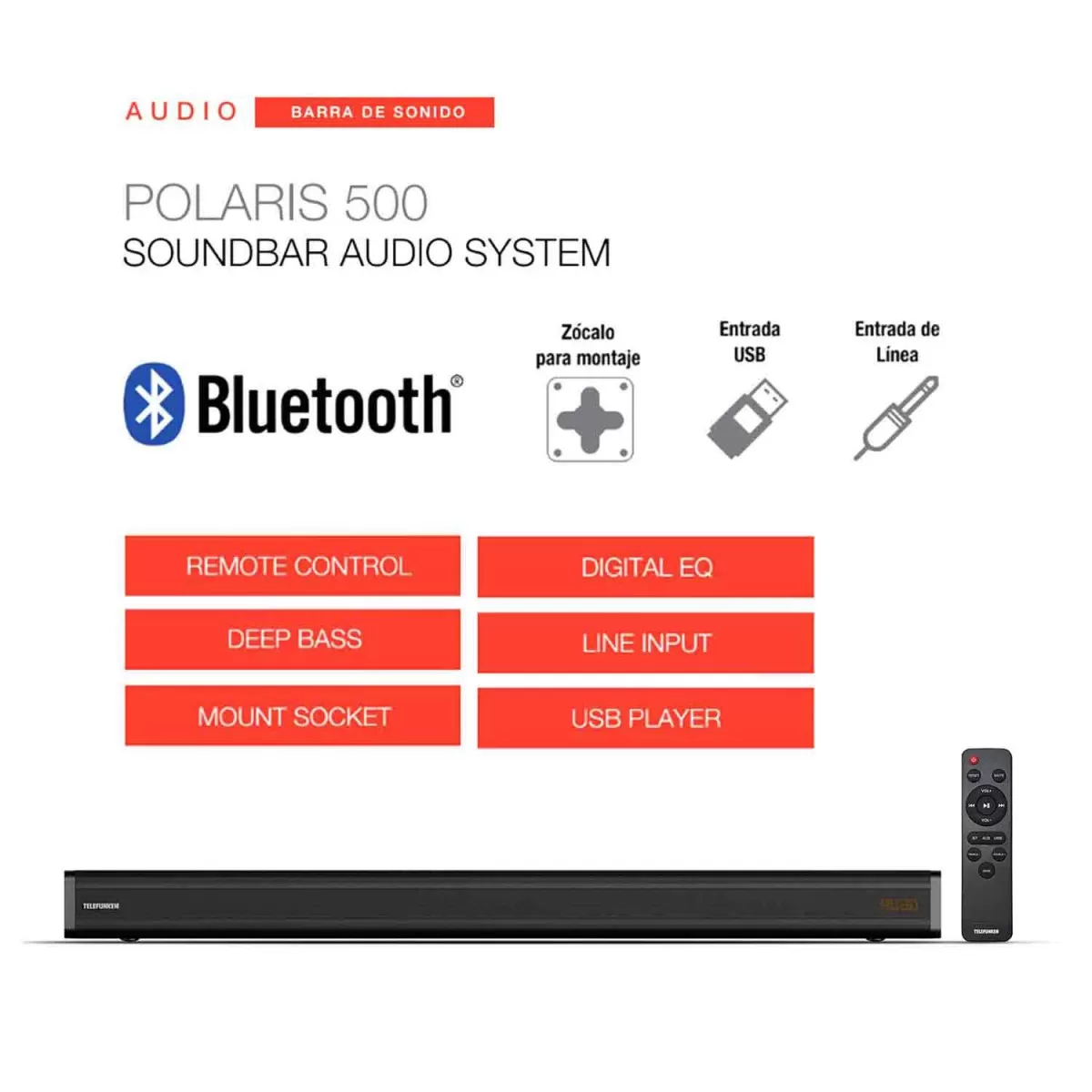 Ideal para ver películas, series o escuchar música con bajos profundos y sonido nítido, gracias a sus drivers de 4” y su diseño moderno y compacto. Además, incluye soporte de montaje para que la adaptes perfectamente a tu espacio.
