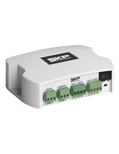 El Amplificador para Instalación SKP PW-104BT es un amplificador de instalación compacto de 4 canales, diseñado para sistemas de audio ambiental en comercios, oficinas y espacios corporativos. Ofrece 25 W RMS por canal a 8 Ohms, conectividad Bluetooth integrada y múltiples opciones de entrada, todo en un formato pequeño y fácil de instalar.