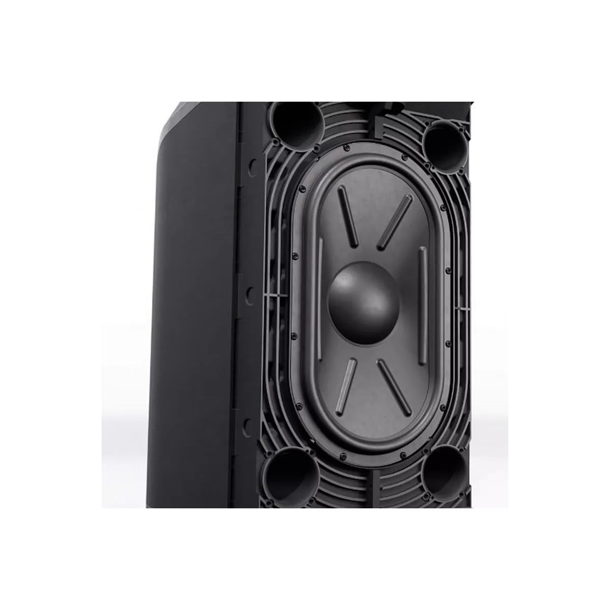 Logre más graves en un tamaño compacto con un subwoofer integrado que cuenta con un driver RaceTrack de alta excursión de 178 mm × 330 mm (7" × 13"), un rendimiento que compite con un woofer convencional de 305 mm (12"), pero con un tamaño más pequeño.