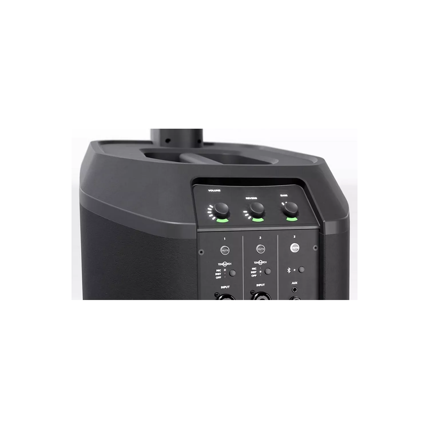 Conecte diversas fuentes de audio fácilmente a través del mezclador incorporado con dos entradas combinadas XLR- de 6.35 mm (1/4”) con alimentación phantom, una entrada auxiliar de 6.35 y 3.5 mm (1/4" y 1/8"), además de transmisión Bluetooth® y acceso al ecualizador del sistema y los preajustes ToneMatch, volumen, tono y reverberación a través de controles iluminados.