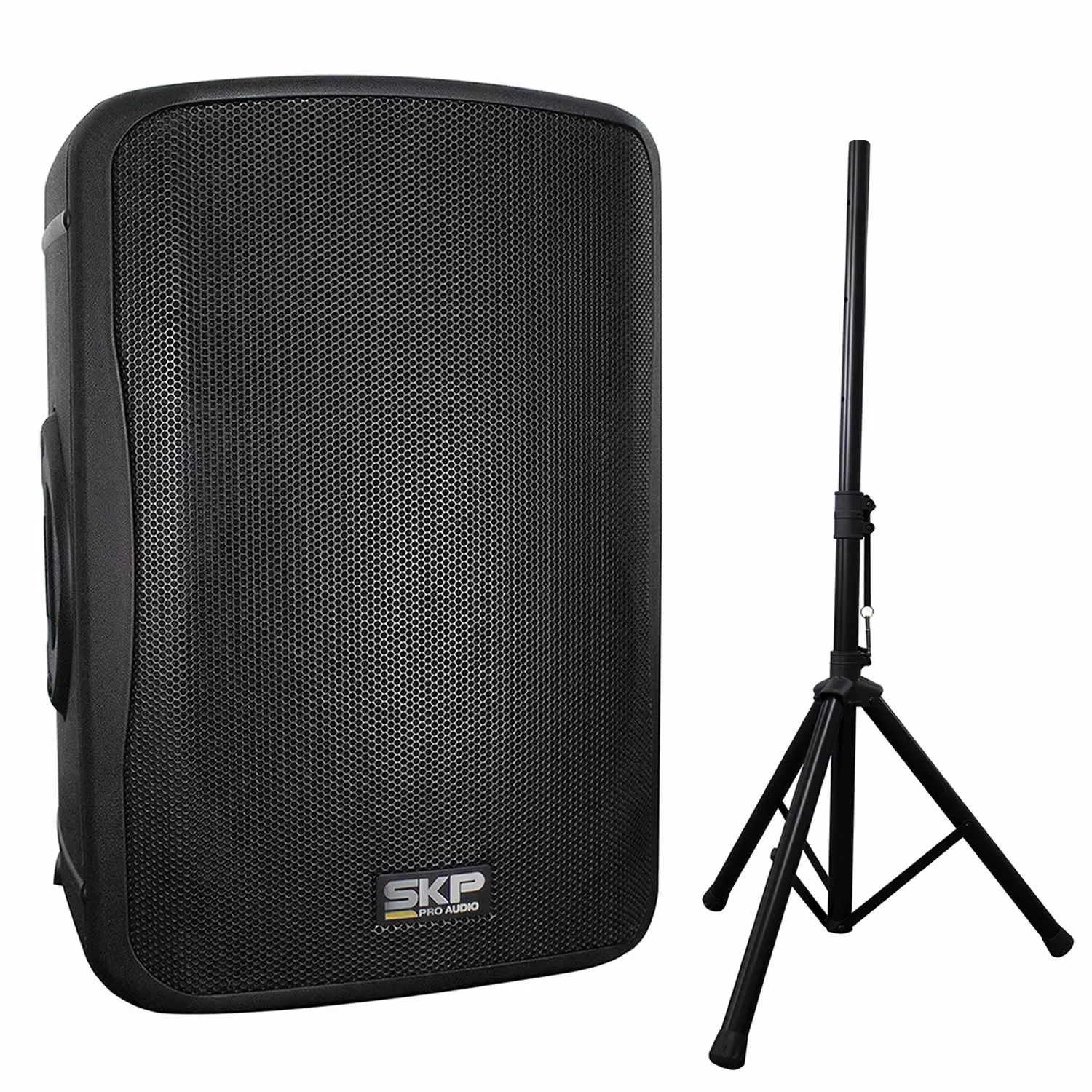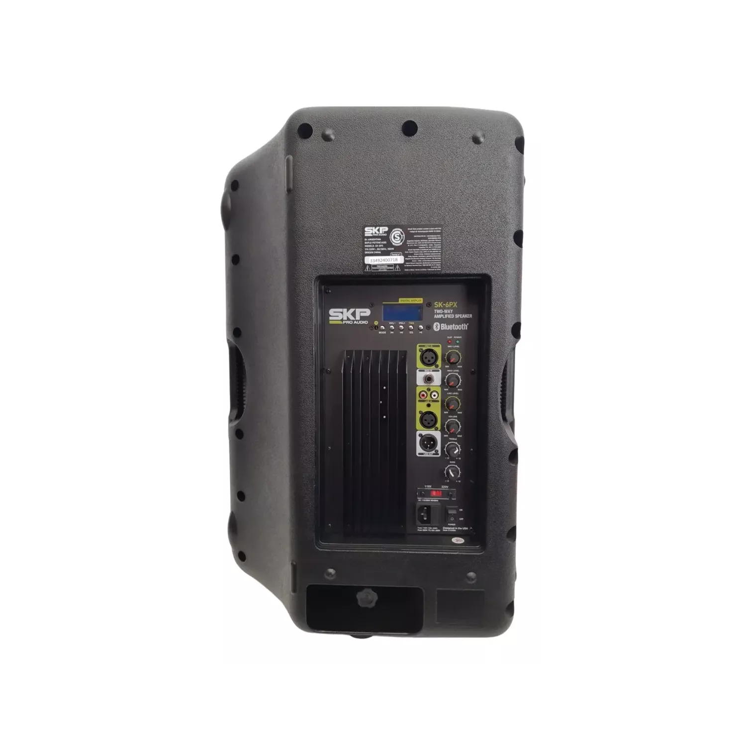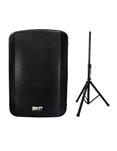 Bafle Potenciado SKP SK-6PX Bluetooth, Full range de 2 Vías y 250w RMS de potencia. Entrada de Micrófono y de Línea. Soporte Trípode Incluído.
