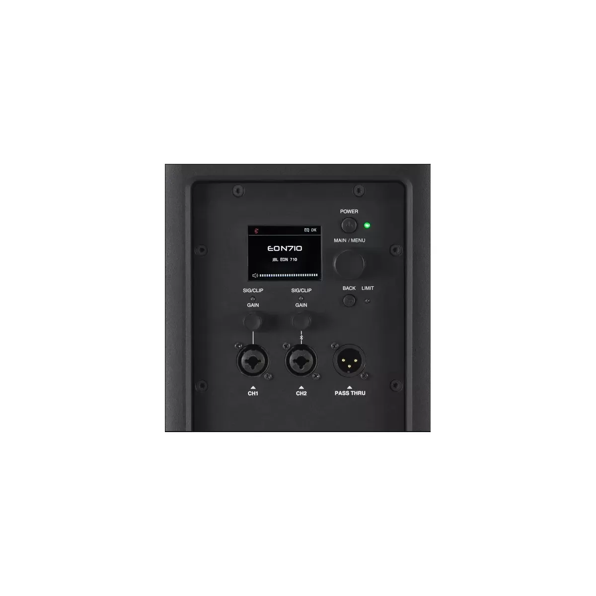 El woofer del EON710 está rediseñado para una menor impedancia y una mayor eficiencia, una bocina mejorada ofrece un ancho de haz suave fuera del eje y el potente controlador de compresión 2414H de JBL cuenta con un imán de neodimio premium para una respuesta equilibrada en un tamaño liviano. El altavoz funciona con 1300 vatios de amplificación discreta ultraeficiente de Clase D para un sonido limpio y claro. Todo ello se suma a una cobertura, coherencia e inteligibilidad superiores en cualquier volumen.