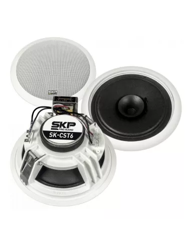 El SKP SK-CST6X es un parlante empotrable de techo de 6 pulgadas, diseñado para sistemas de audio ambiental y anuncios por voz en instalaciones comerciales. Su diseño full range bidireccional y el transformador integrado para líneas de 70V y 100V lo convierten en una solución práctica, confiable y fácil de integrar en sistemas de sonido distribuido.