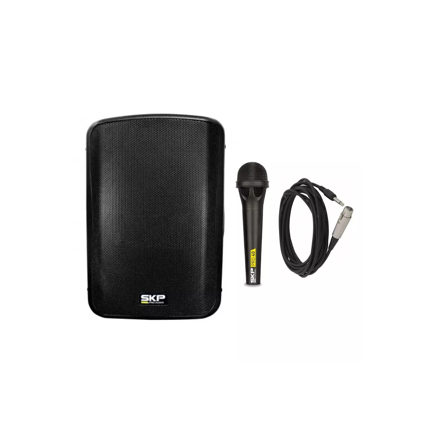 Preparate para que tu sonido se escuche con potencia y claridad donde sea que vayas. Este combo incluye el Bafle Activo SKP SK-2PX de 10 pulgadas y el Micrófono Dinámico SKP PRO-20.