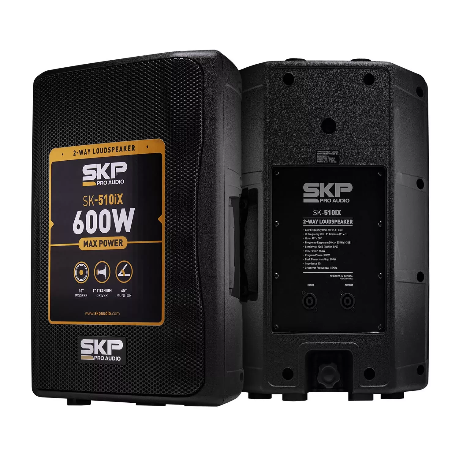 El SKP SK-510iX es un bafle pasivo full range de 2 vías, diseñado para ofrecer mayor presión sonora, claridad y rendimiento en aplicaciones de sonido profesional. Incorpora un woofer de 10 pulgadas, driver de alta frecuencia con diafragma de titanio y un gabinete robusto que permite su uso tanto como bafle principal sobre trípode como monitor de escenario en ángulo de 45°.