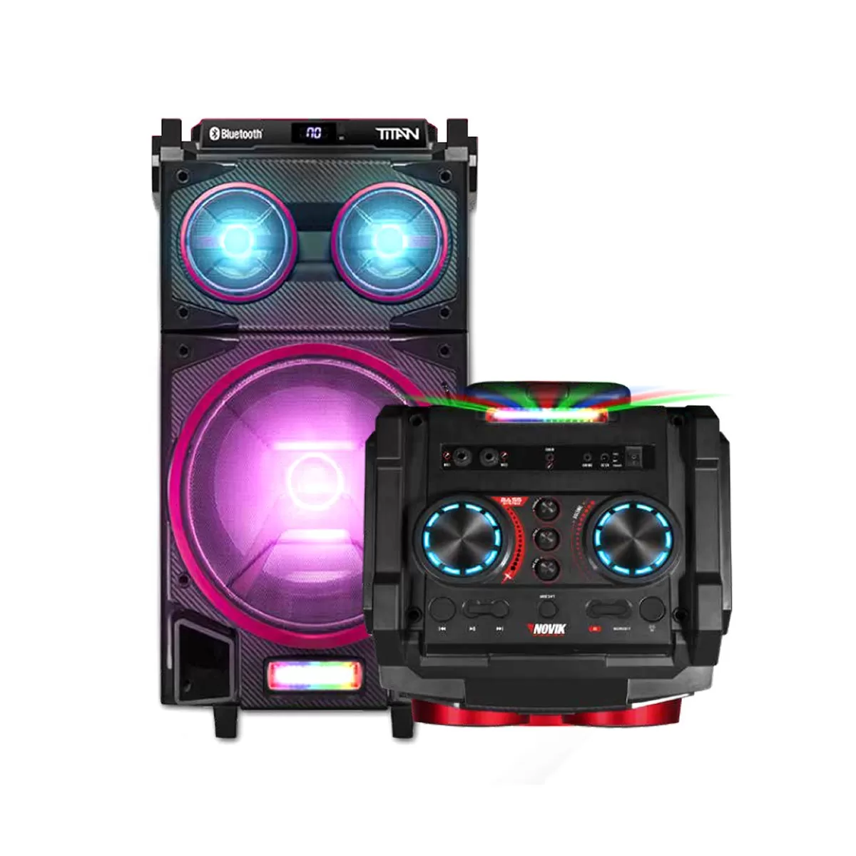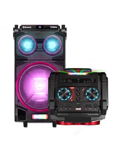 Sistema de audio Potenciado Novik Neo TITAN 10" de 2 Vías con 2 Tweeters Portátil con Batería y Ruedas. Conectividad Bluetooth y Luces LED. Ideal para divertirte con familia y amigos. Función Karaoke.