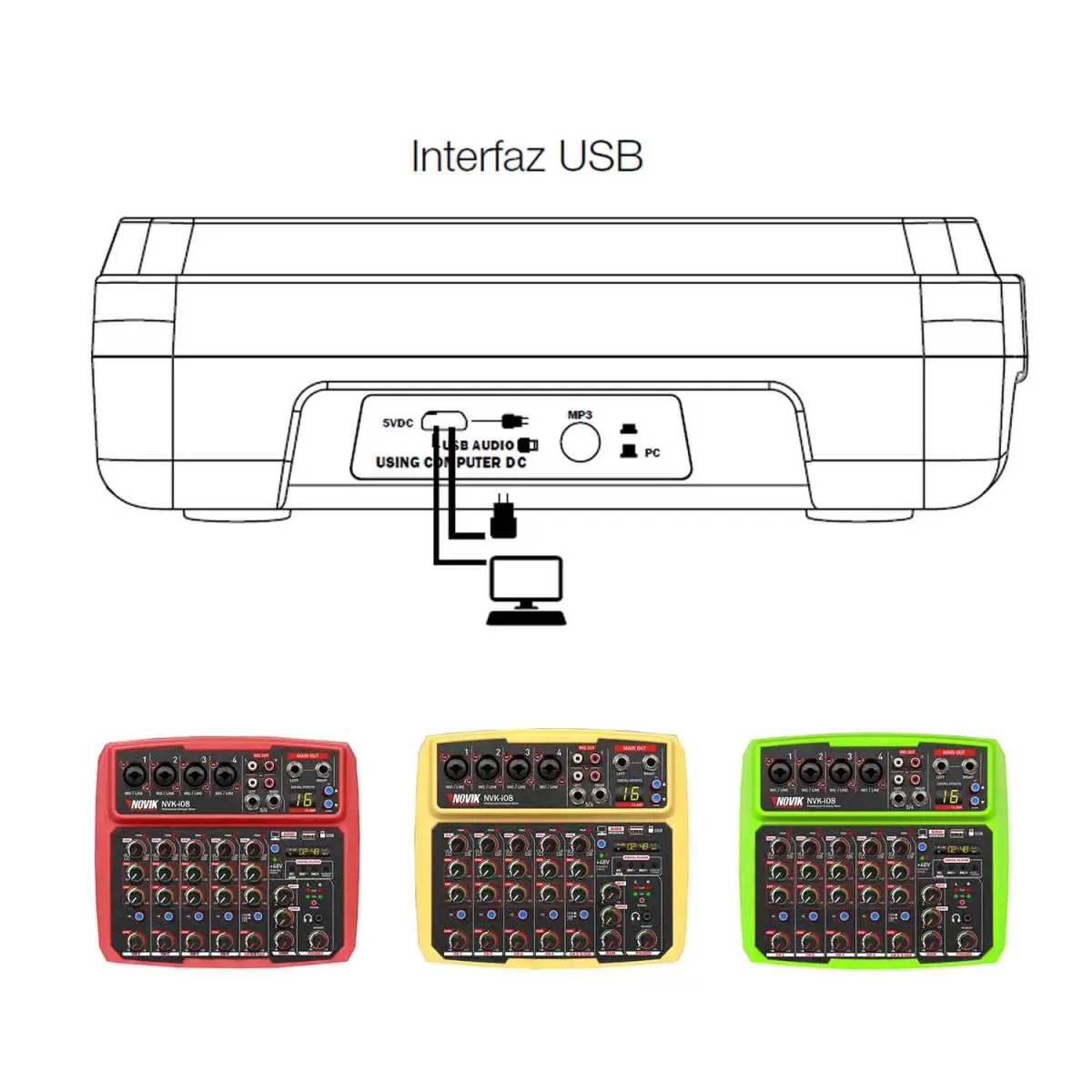 Mixer Compacto Profesional NOVIK NEO NVK-i08BT Red con inferfaz USB para PC y tecnología Bluetooth incorporada.