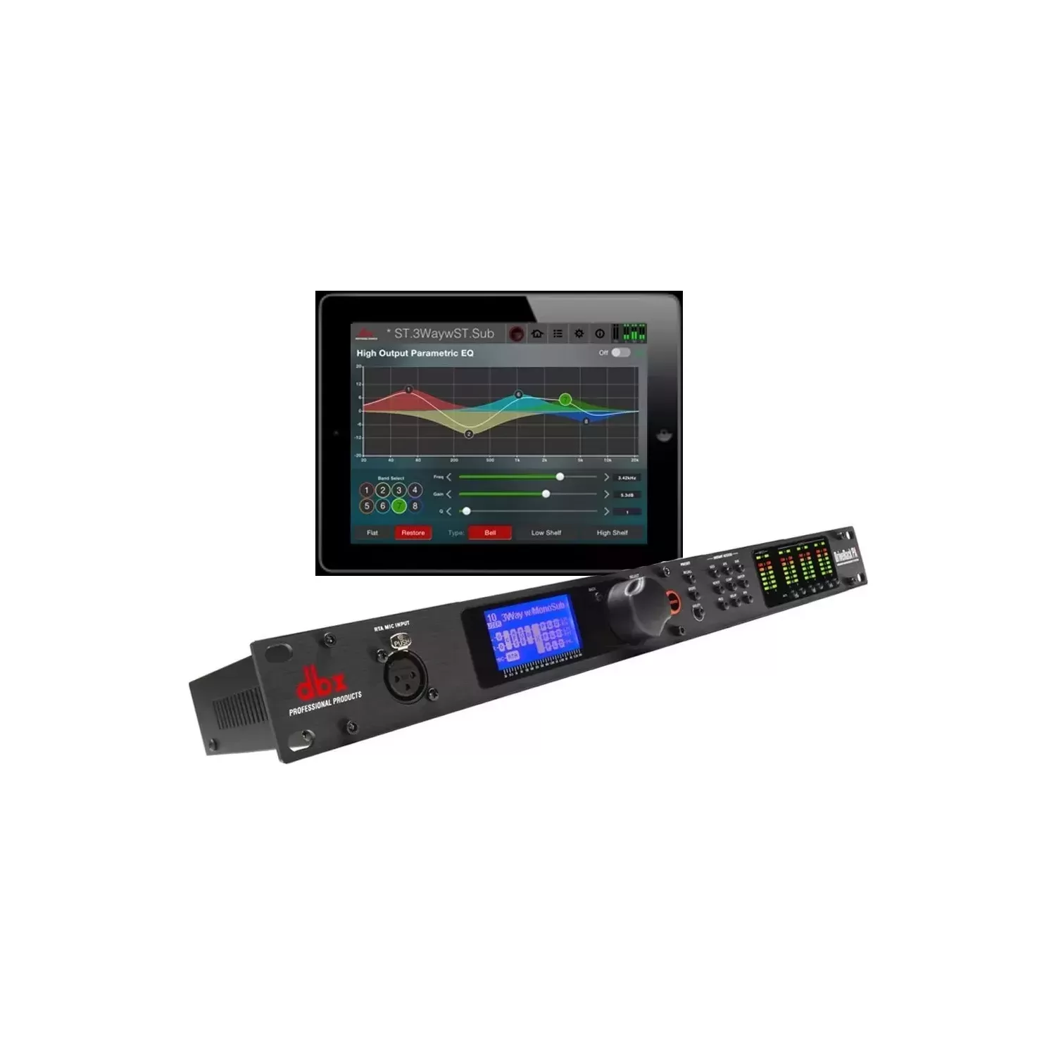 Optimiza la salida, protege los parlantes y mejora el sonido general. Con él podés controlar crossover, ecualización, limitación, delays, supresión de feedback y mucho más — todo desde un solo rack.