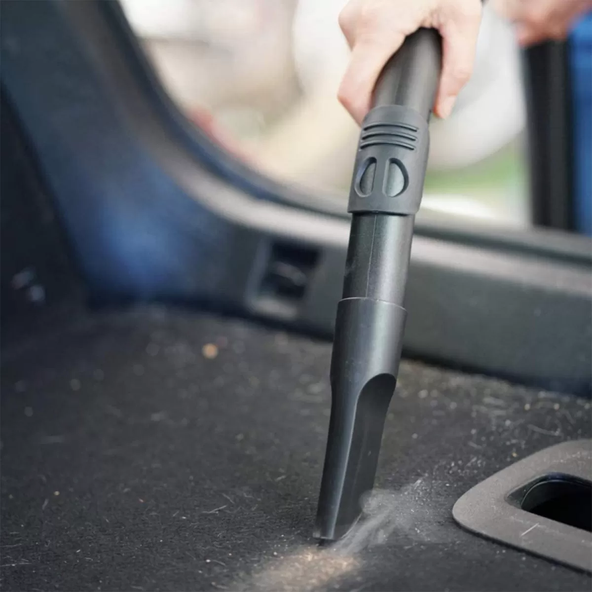 Equipada con ruedas giratorias 360°, múltiples accesorios y alta seguridad en el sistema de cierre, esta aspiradora se convierte en una aliada poderosa para el hogar o el trabajo. Incluye Accesorios de Boquillas, Manguera Flexible Reforzada y Tubos Extensores.