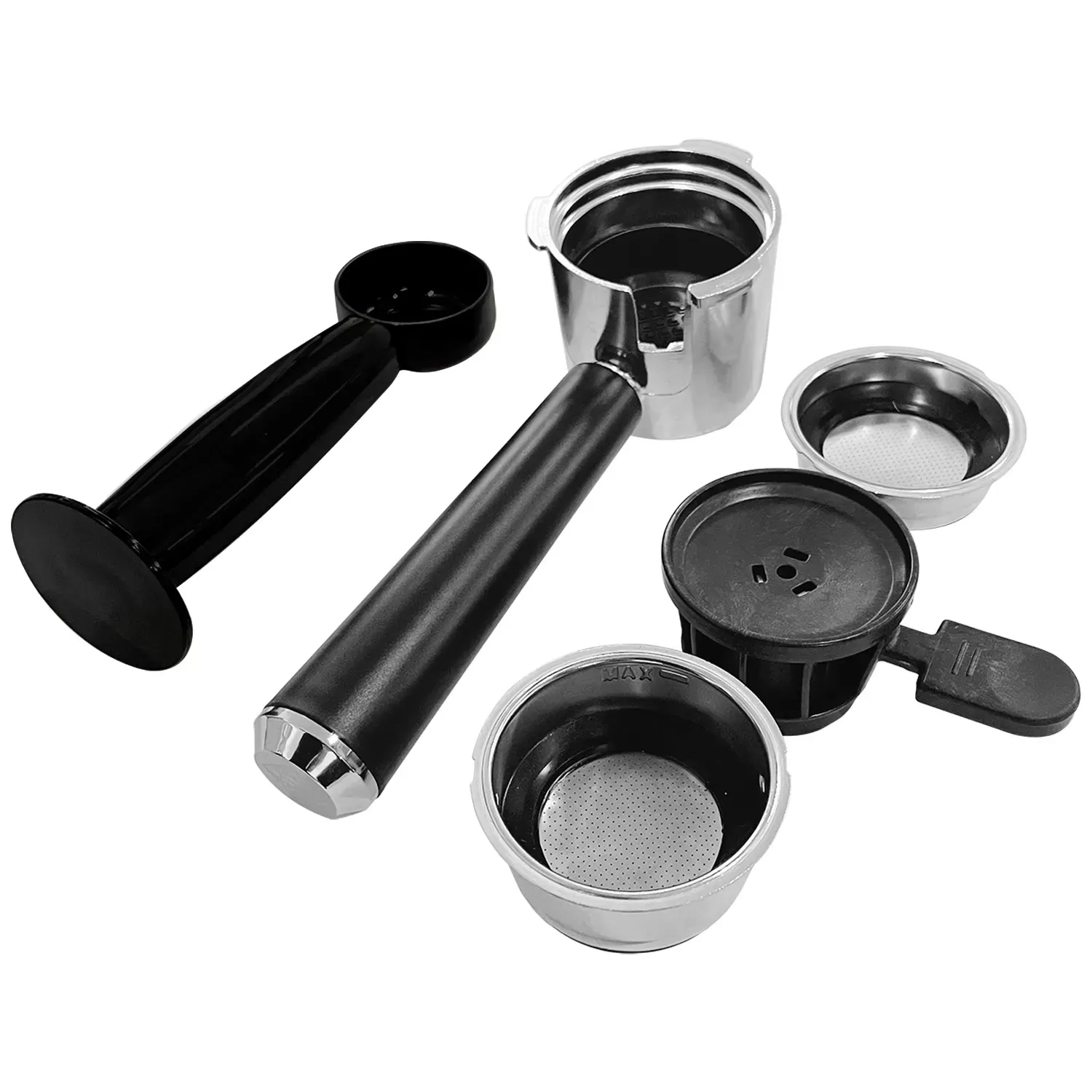 - Filtro simple, filtro doble y cápsulas espresso de formato reducido