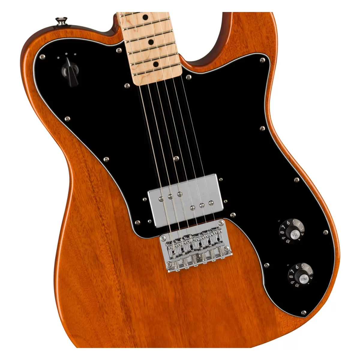 Equipada con una Fender-Designed Wide Range humbucker, y controlada por un selector rotativo de 3 posiciones, esta guitarra permite alternar entre modos single-coil, humbucker tradicional o humbucker con bypass de volumen y tono para un ataque directo y sin filtros