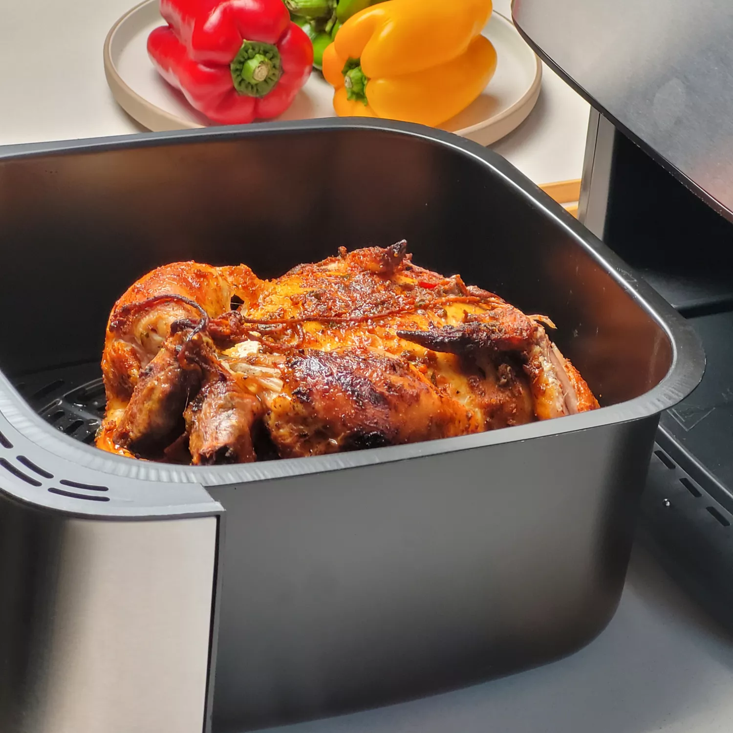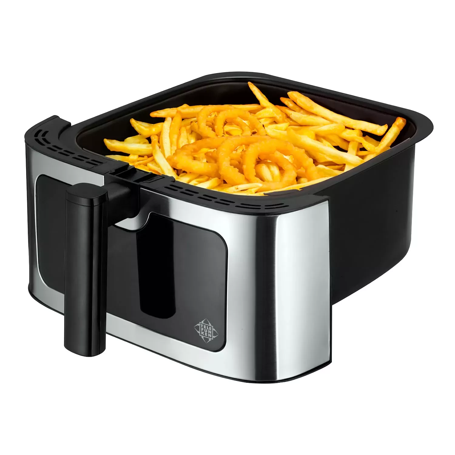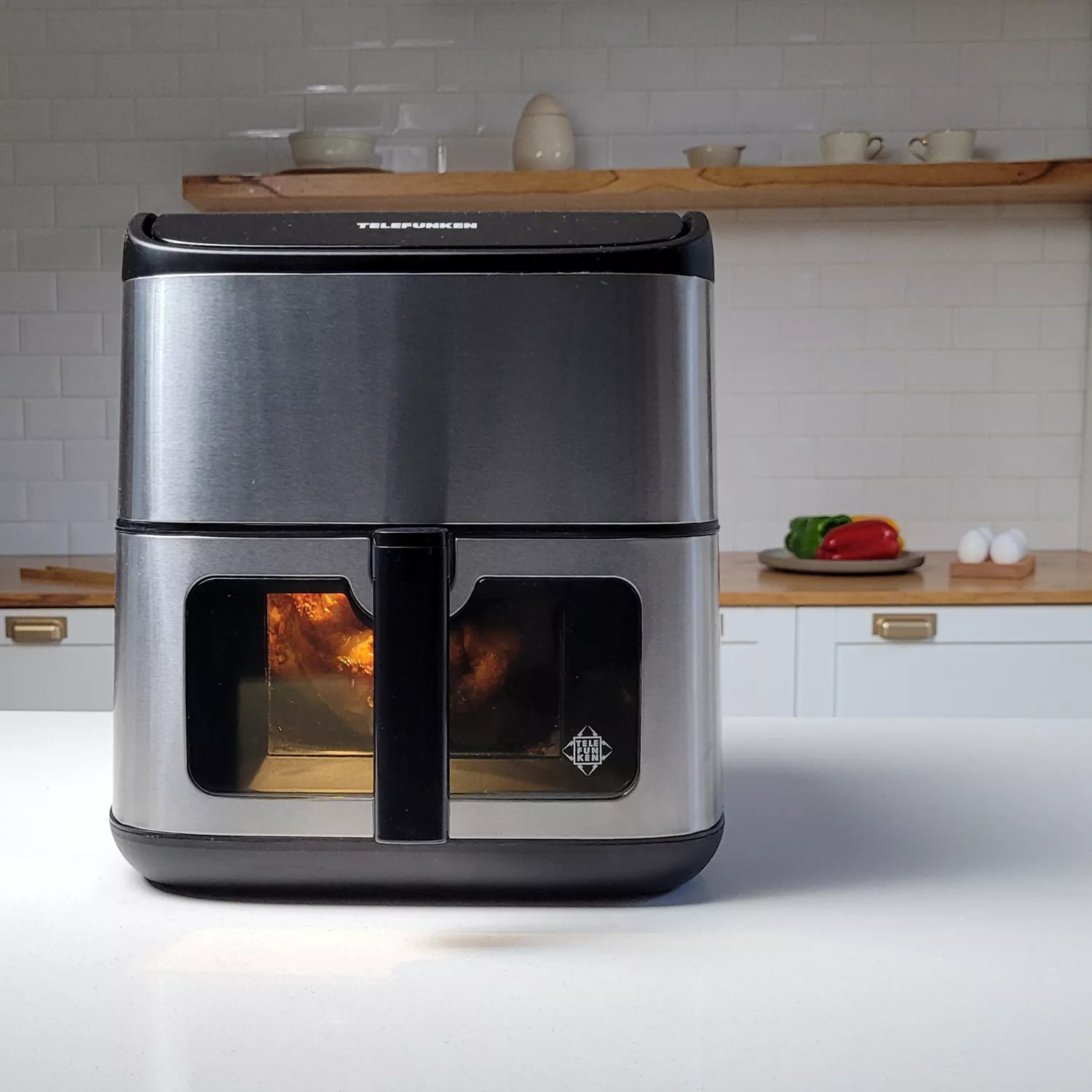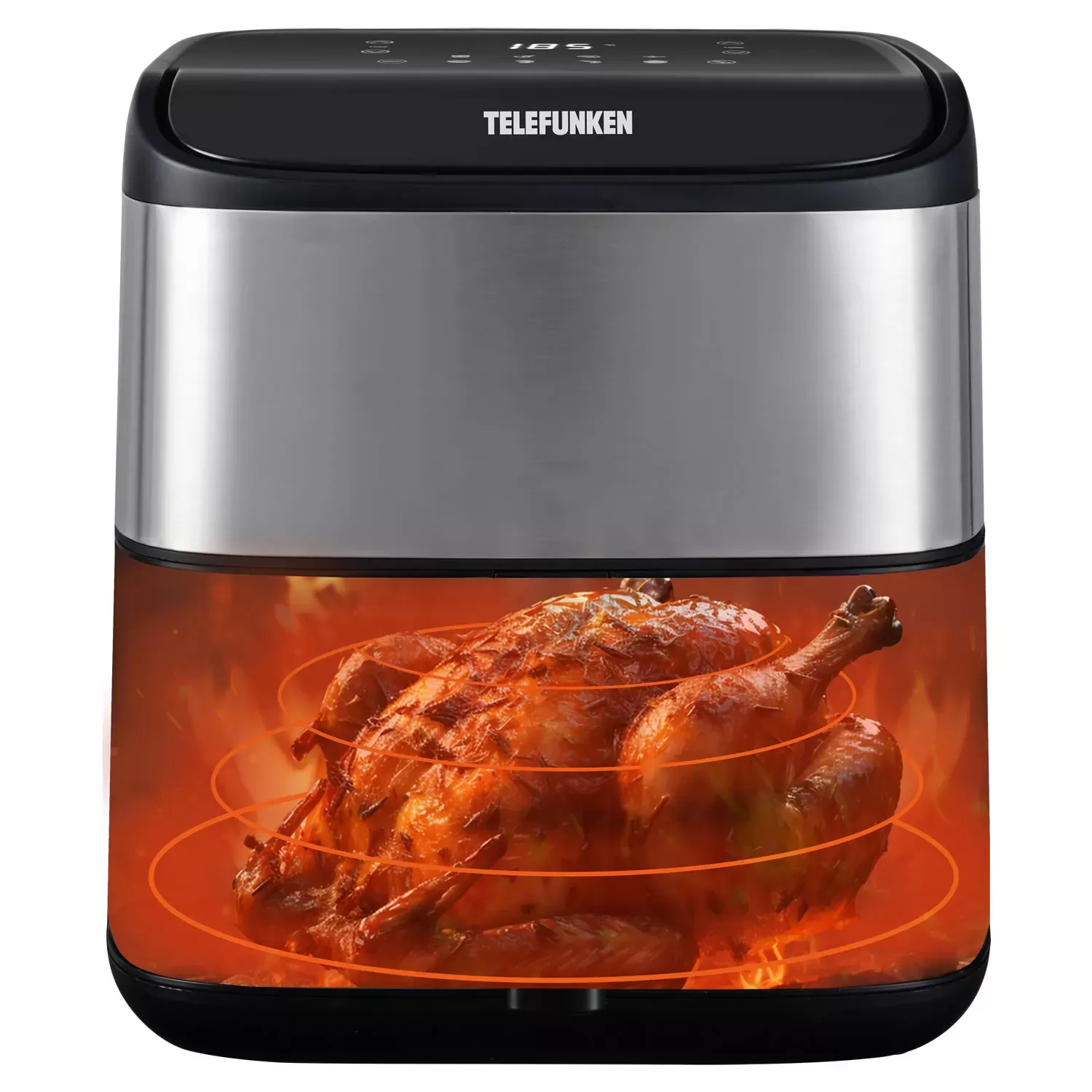 ¡Cociná para toda la familia de forma saludable, rápida y sin aceite! La freidora de aire Telefunken EasyFryer-9000 ofrece una enorme capacidad de 9 litros, ideal para preparar comidas completas para hasta 6 personas. Gracias a su tecnología de aire caliente 360° y su potente motor de 1800W, logra una cocción pareja, crocante por fuera y tierna por dentro, usando hasta un 99% menos de aceite.