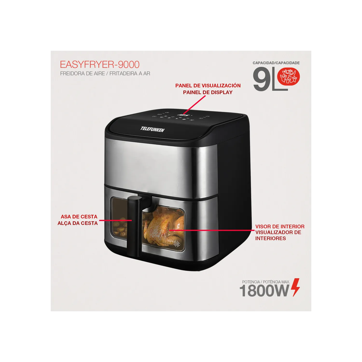 Freidora de Aire TELEFUNKEN EasyFryer 9000 – 9 L – 1800 W