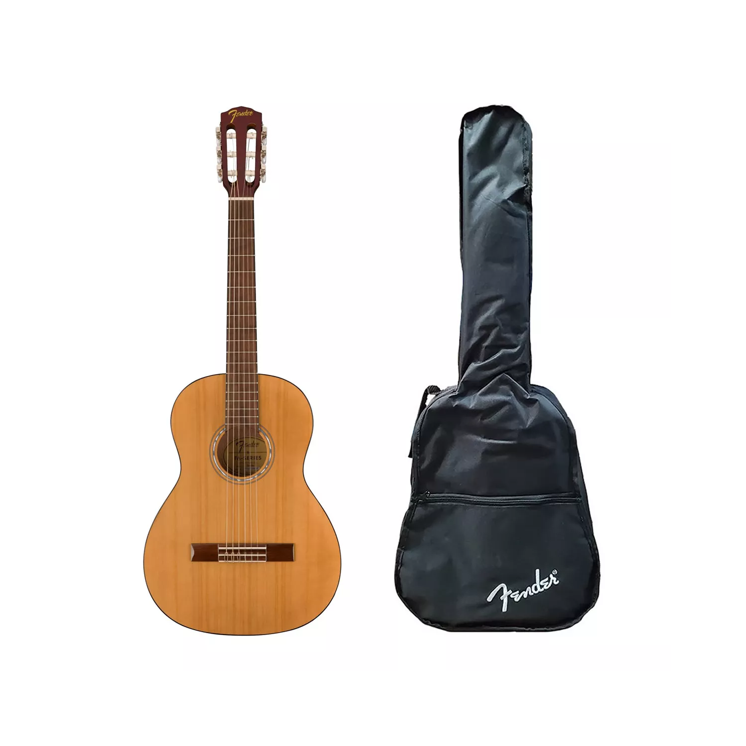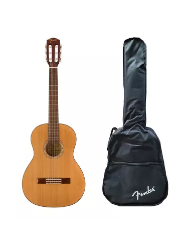 La guitarra Criolla / Clásica Fender FA-15N con Cuerdas de Nylon de tamaño ¾ ofrece un instrumento visualmente impresionante a un precio económico. La construcción laminada de calidad con un Clavijero Fender 3+3 moderno, Puente de Nogal y Mástil de Caoba crean un instrumento que no solo es fácil de tocar, sino que también suena genial. Incluye FUNDA. Acabado del Cuerpo y Cuello en Uretano y Pliéster BRILLANTE. Ideal para CONCIERTO.