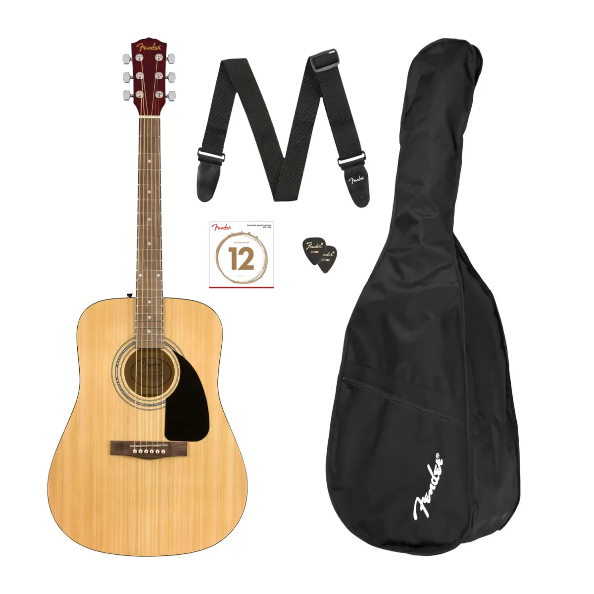 - Kit de Guitarra Fender Dreadnought FA-115, Natural, Diapasón de Nogal