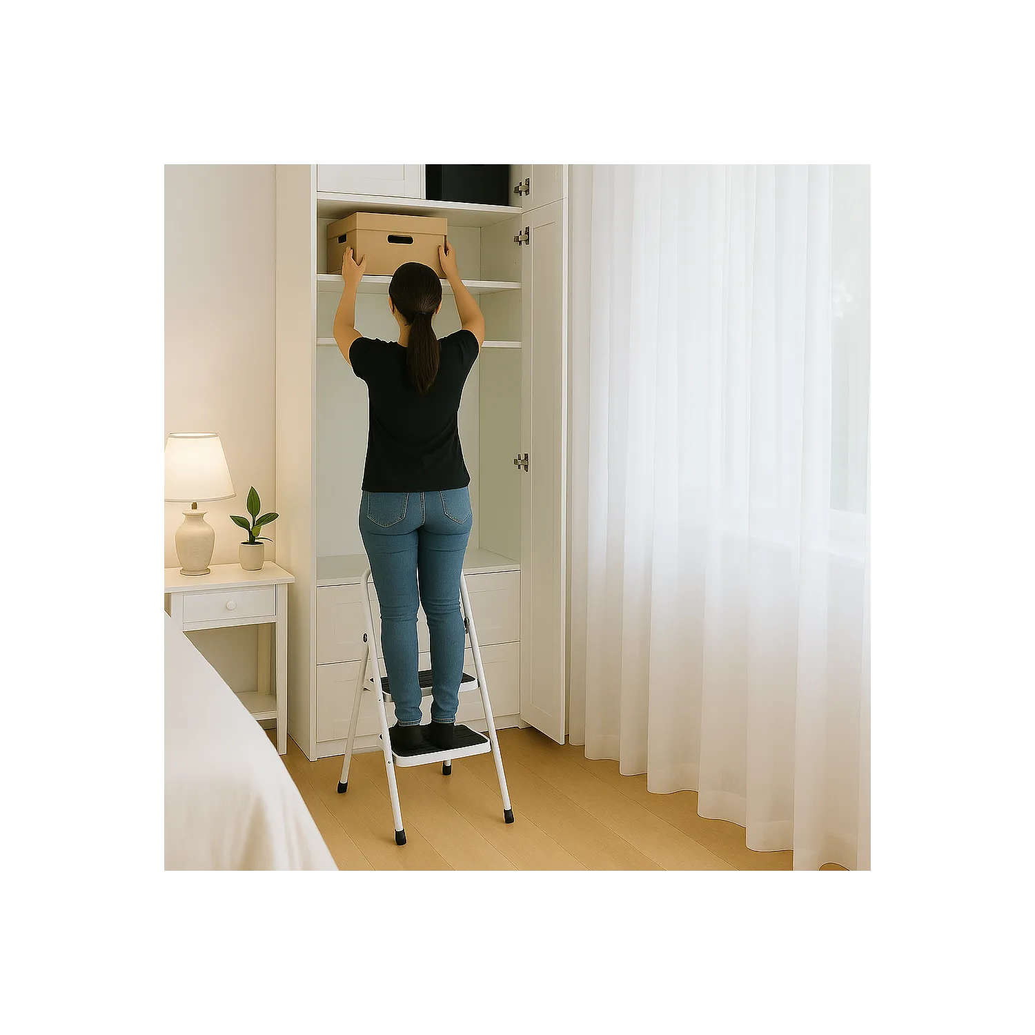 Una escalera práctica, segura y fácil de guardar, ideal para tareas cotidianas con máxima estabilidad