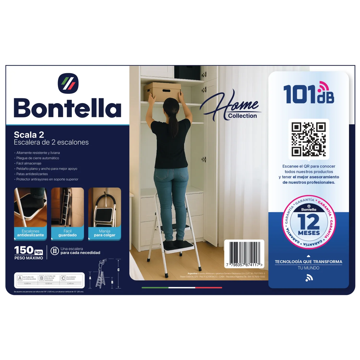 La escalera de 2 escalones plegable es una solución práctica, segura y resistente para el hogar, oficina o comercio. Fabricada en acero de alta resistencia, soporta hasta 150 kg, ofreciendo estabilidad y confianza en cada uso.