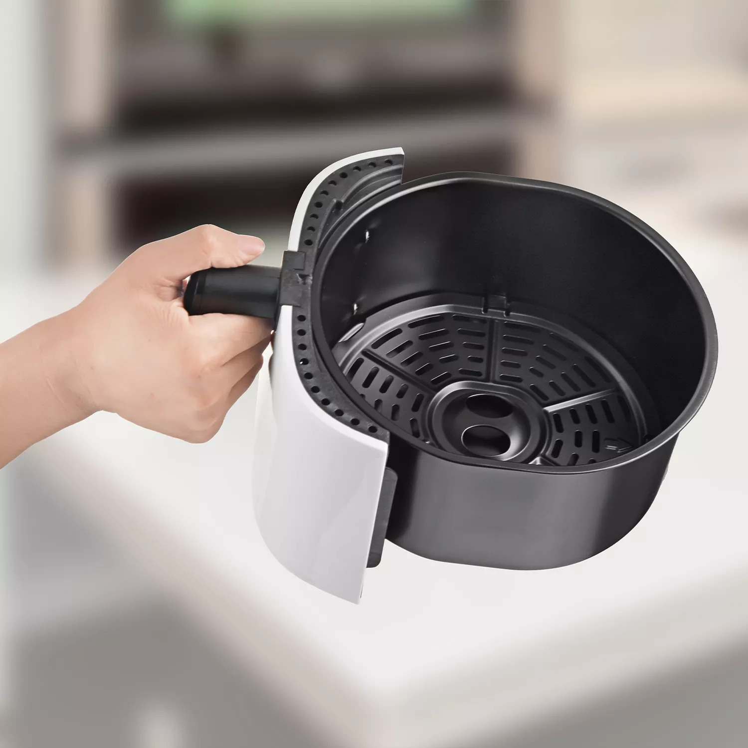 Con capacidad de 3.6 litros, tecnología de circulación de aire caliente 360° y potencia de 1400W, permite lograr alimentos crujientes por fuera y tiernos por dentro, utilizando hasta un 99% menos de aceite.