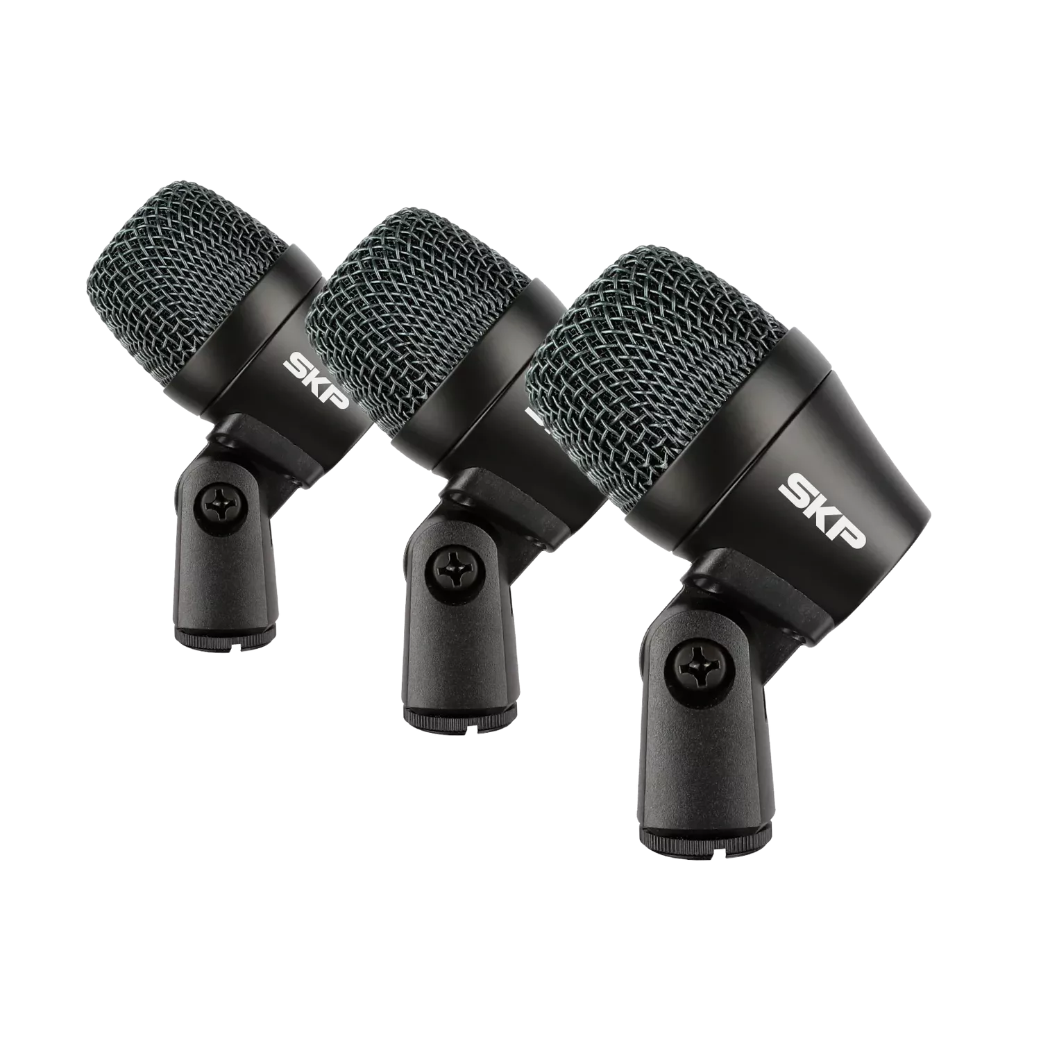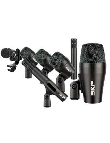 - Micrófonos dinámicos cardioides para bombo, redoblante y toms.