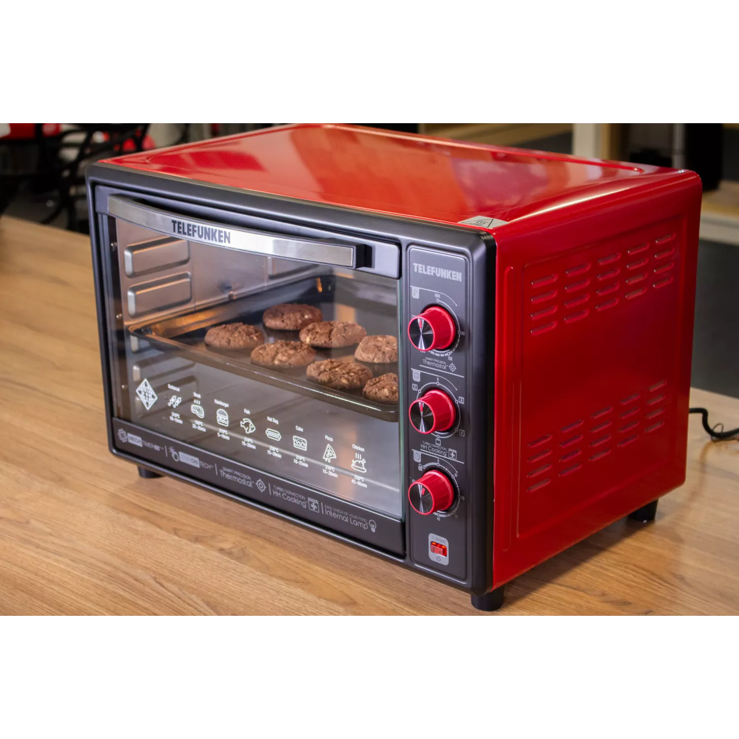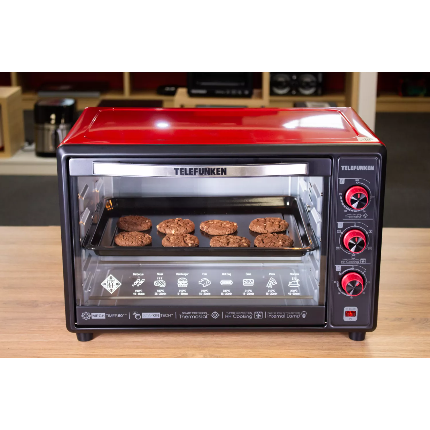 Maximiza tu cocina con el Horno Eléctrico Telefunken de 30 litros y su sistema de Turbo Convección que asegura resultados perfectos. Control manual intuitivo, amplio rango de temperatura (65-250°C) y timer programable. Disfruta de múltiples configuraciones de cocción, interior antiadherente fácil de limpiar y la comodidad de los accesorios incluidos. Estable, seguro y con la opción "Stay On". ¡Recuerda los pasos iniciales para un uso óptimo!