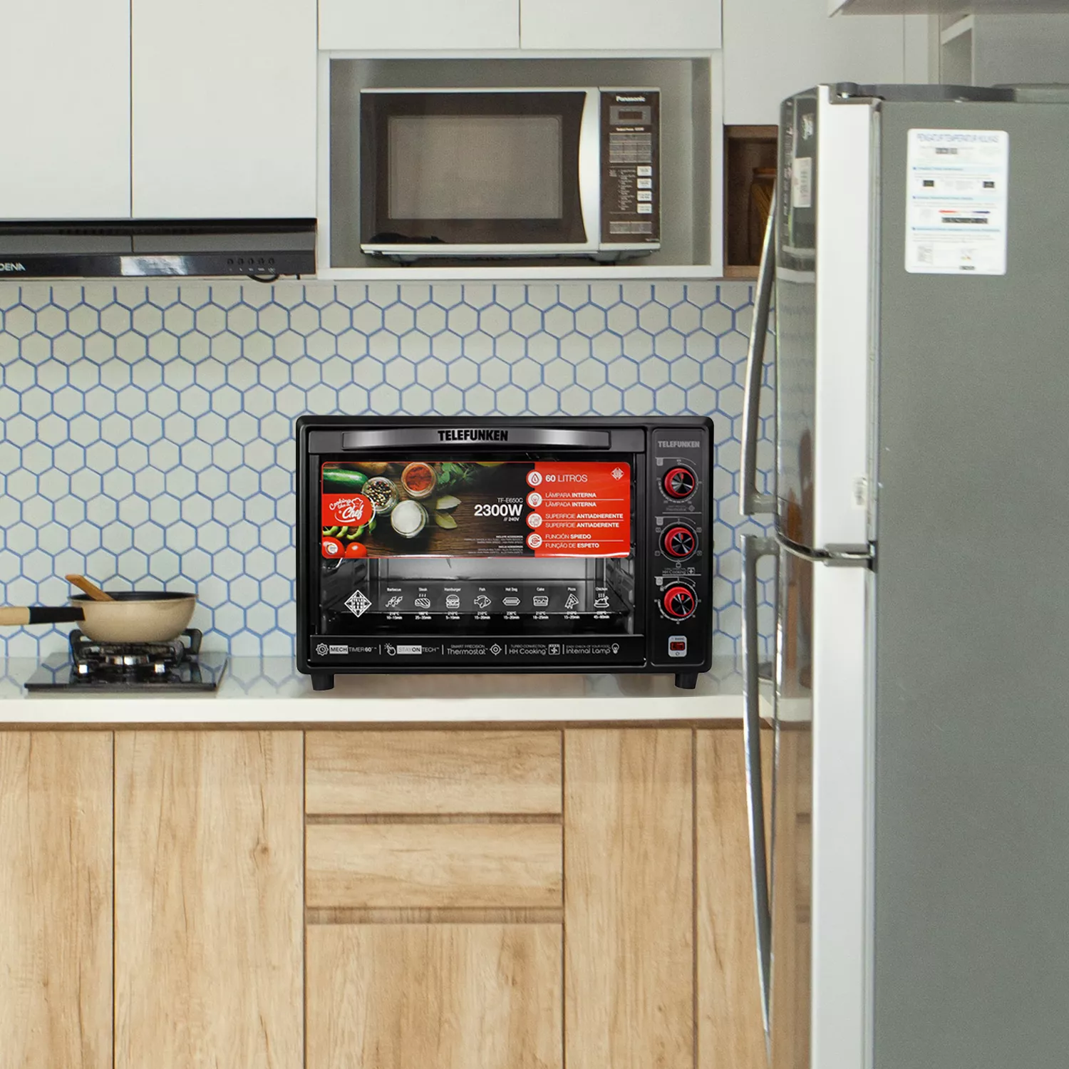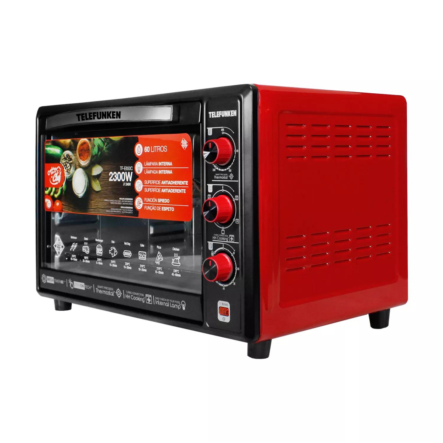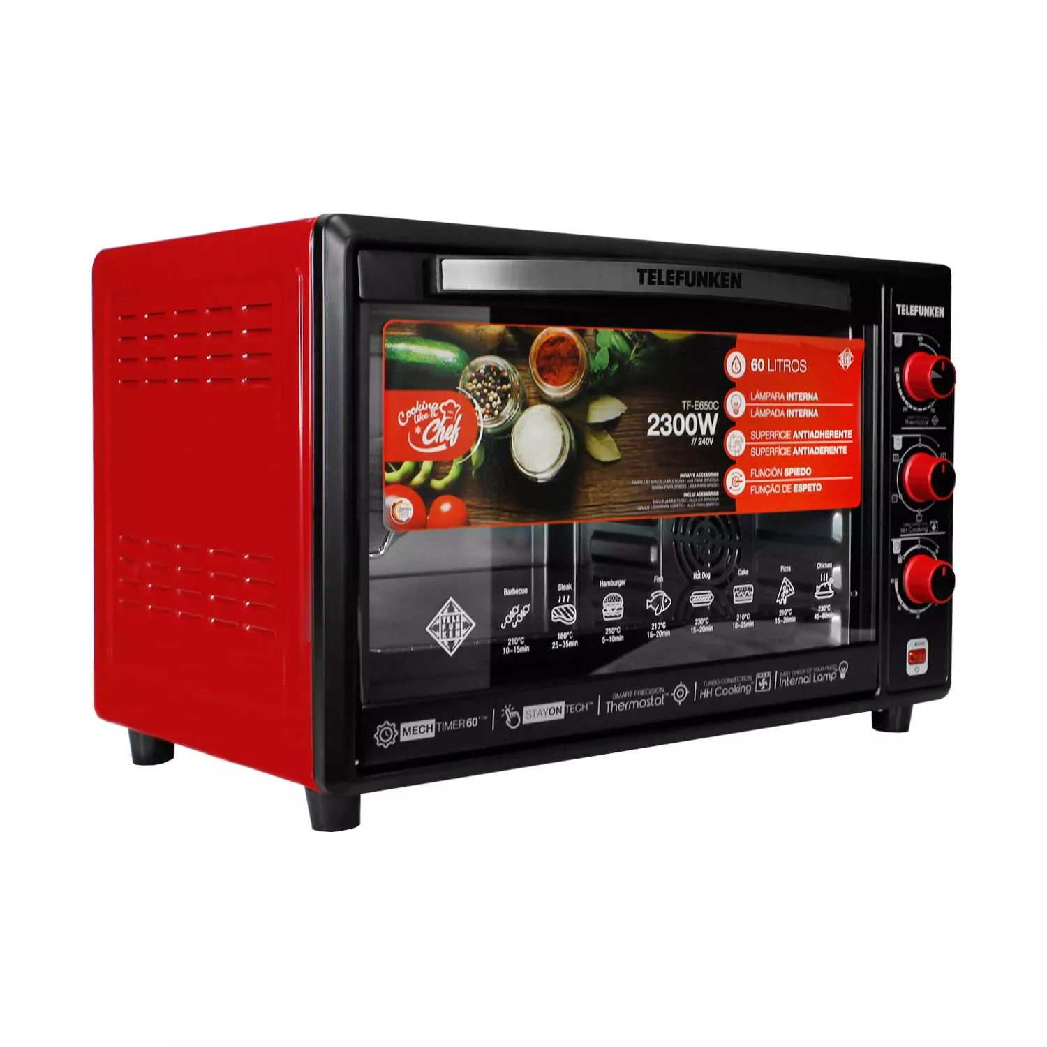Llevá la cocina profesional a tu casa con el Horno Eléctrico Telefunken TF-E650C. Con una gran capacidad de 60 litros y una potencia de 2300W, este horno es perfecto para cocinar pizzas, carnes, pastelería, panes y mucho más, de forma rápida, pareja y saludable.