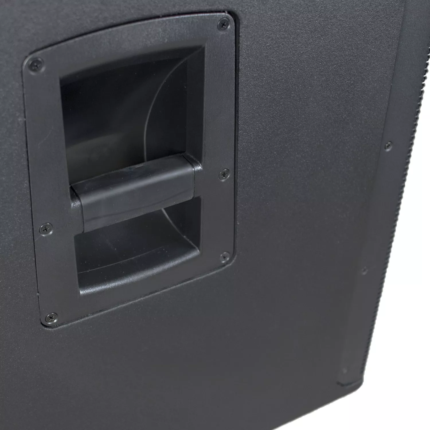 Construido en madera de alta densidad, con acabado Duraflex™ y rejilla de acero, está preparado para giras e instalaciones profesionales.