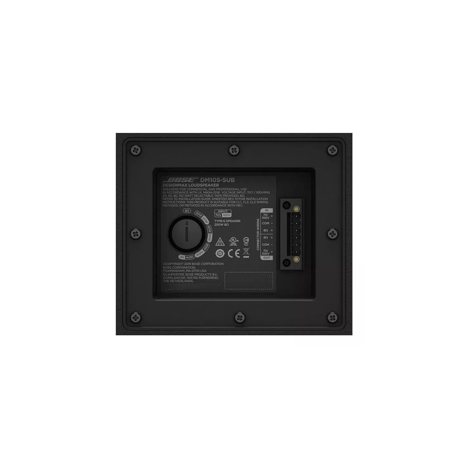 El subwoofer DM10S-SUB de 300 vatios de Bose Professional , que ofrece un rico rendimiento de gama baja, aporta al instante unos graves impresionantes a cualquier instalación de sonido comercial. El DM10S-SUB de montaje en superficie tiene un woofer de 10 pulgadas, un rango de frecuencia de 35 Hz a 125 Hz y se fija a un soporte en U QuickHold oculto. Los subwoofers DesignMax complementan y mejoran cualquier instalación DesignMax .