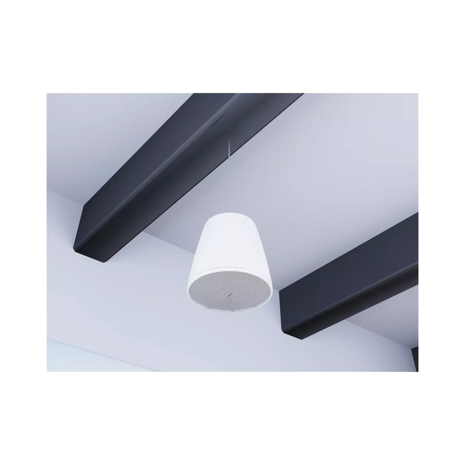 - Proporcione una estética abierta y atractiva con altavoces colgantes que incorporan un sistema de suspensión empotrado de un solo punto que mantiene los herrajes fuera de la vista y puede utilizarse para sujetar y ocultar un bucle de servicio para facilitar el acceso.