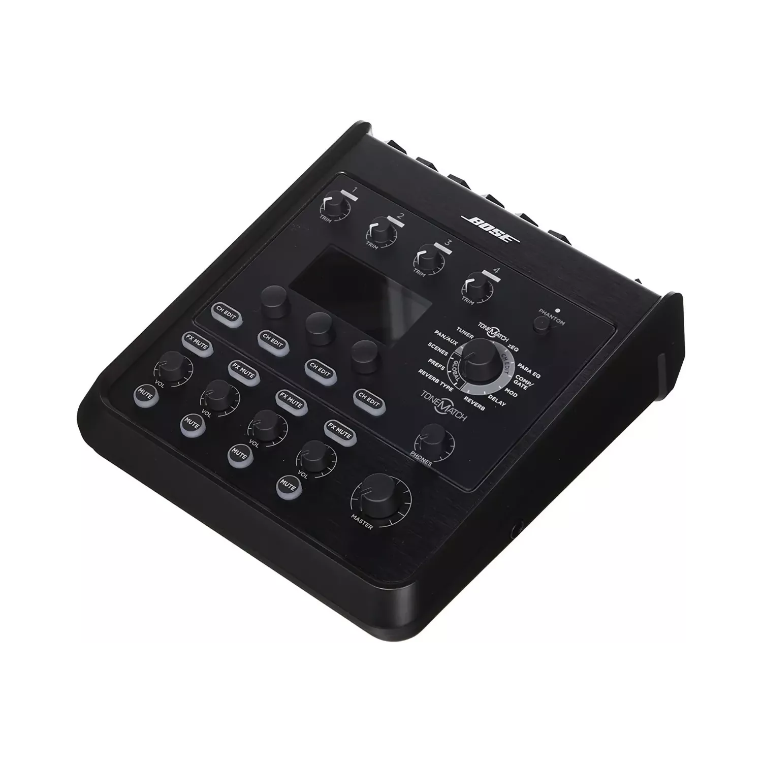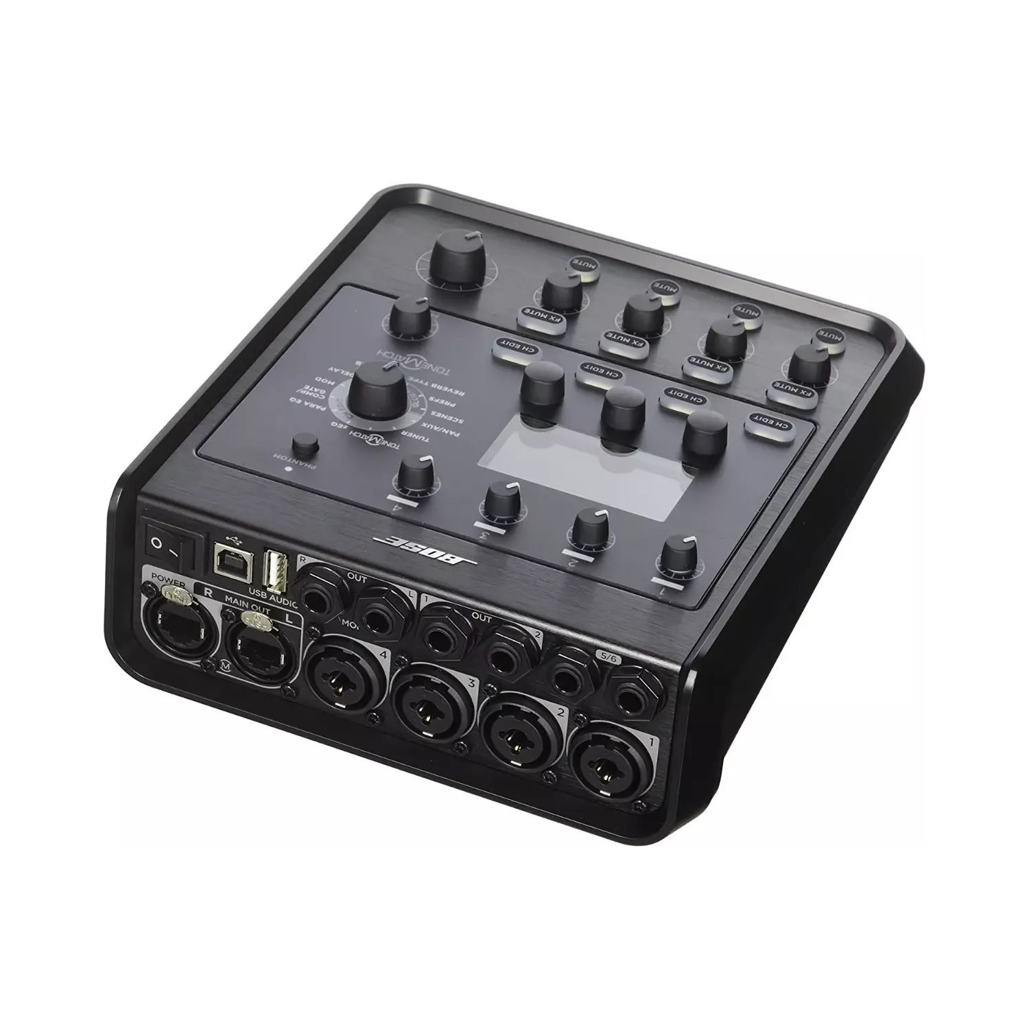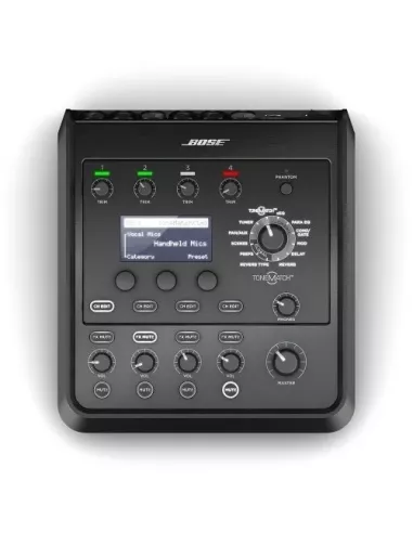 Toma el control de tu música con el mezclador T4S ToneMatch, una interfaz ultracompacta de 4 canales diseñada para artistas. Diseñado con un potente motor DSP y un control de usuario intuitivo, el T4S ofrece ecualización, dinámica y efectos con calidad de estudio. Disfruta de un sonido excepcional con el procesamiento Bose ToneMatch integrado y zEQ, especialmente al conectarlo a un sistema Bose L1 o F1 para un control tonal completo de principio a fin. Toca con confianza en el escenario con el robusto T4S gracias a sus controles táctiles, su pantalla LED de fácil lectura y la función de recuperación de escenas. El T4S, el compañero ideal para artistas.