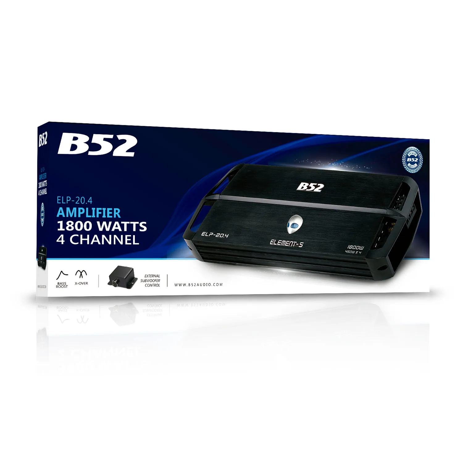 Amplificador Car Audio B52 ELP-20.4 4 Canales 185W RMS x4 2 Ohm con Crossover y Bass Boost