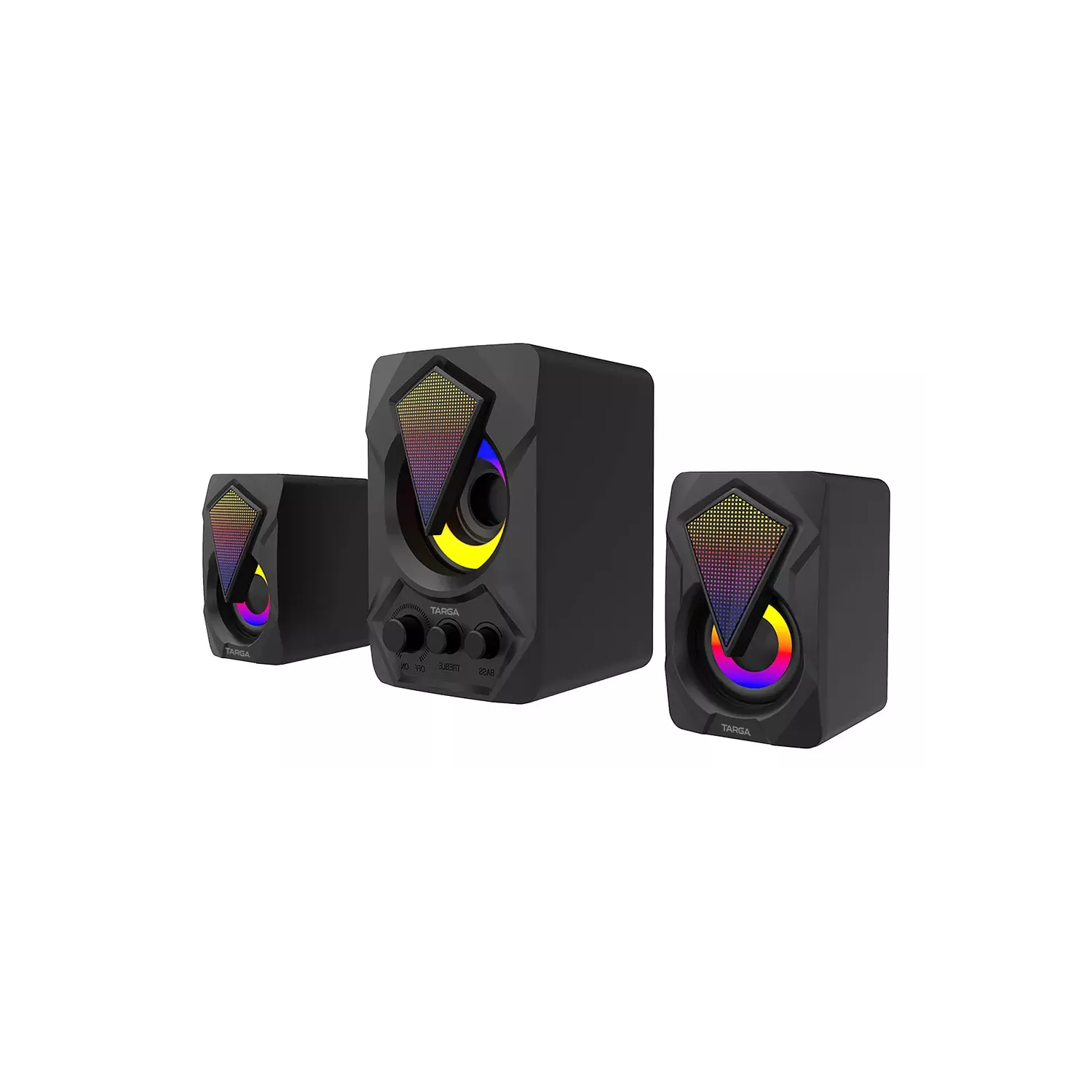 Transforma tu experiencia de juego con el Combo Gamer RGB Targa, que incluye un teclado TG-K120RGB y un mouse TG-M250, complementados por los potentes parlantes Diamond Pro. Este conjunto está diseñado específicamente para los entusiastas de los videojuegos que buscan un rendimiento óptimo y un diseño atractivo