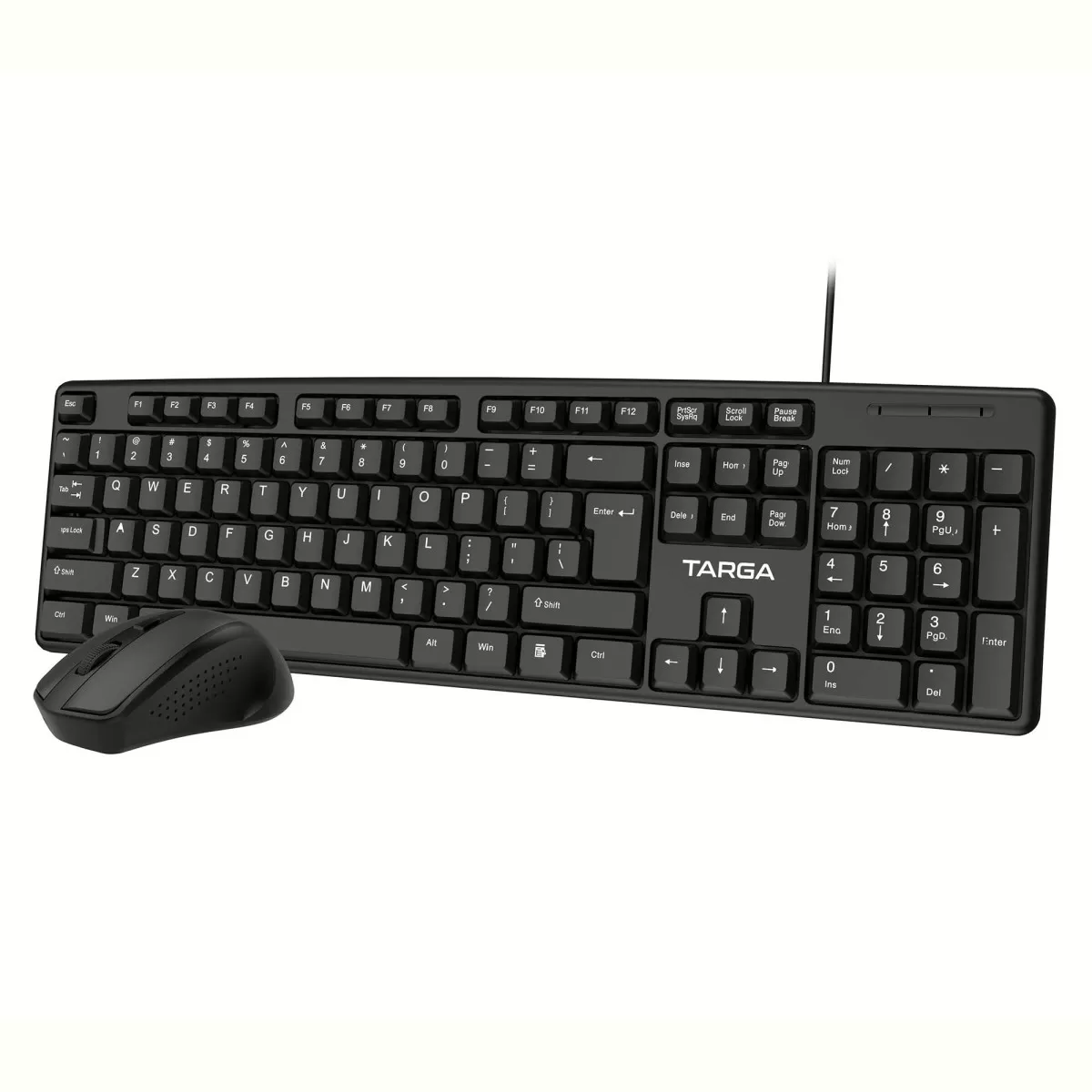 KIT de Teclado con cable y Mouse inalámbrico Plug & Play TARGA Tech OFFICE 200. El kit cuenta con conectividad USB, plug & play, respuesta rápida y bajo ruido, ambos con un diseño compacto y fácil de transporte. Su teclado posee un diseño ergonómico para largas horas de uso, suave al tacto, con 12 teclas multimedia y su mouse tiene un sensor óptico de alta definición. Diseño a prueba de agua. Alta durabilidad. Respuesta rápida - bajo ruido.