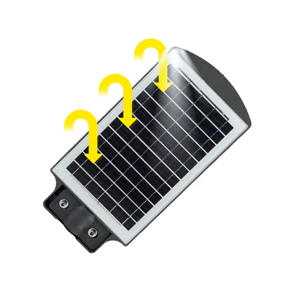 La lámpara eléctrica bajo consumo, formada por Leds, utiliza la electricidad que genera el Panel de Celdas Solares, para irradiar un potente Luz. La ventaja del producto es que no hay cables, fácil de instalar y sin electricidad. Durante el día, el panel solar absorbe la luz del sol, se convierte en electricidad y se almacena en baterías, para luego poder abastecer por la noche a la Luminaria que se encenderá automáticamente.