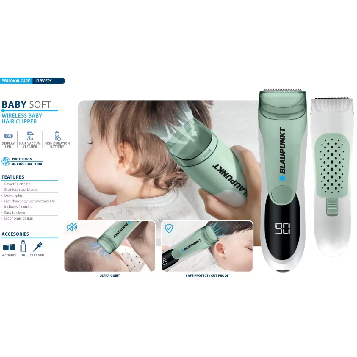La Blaupunkt Baby Soft es una cortadora de pelo inalámbrica diseñada especialmente para bebés y niños pequeños. Gracias a su motor silencioso, cuchillas de cerámica seguras y sistema de almacenamiento de cabello integrado, permite un corte suave, rápido y sin molestias para los más pequeños ni riesgos de cortes.