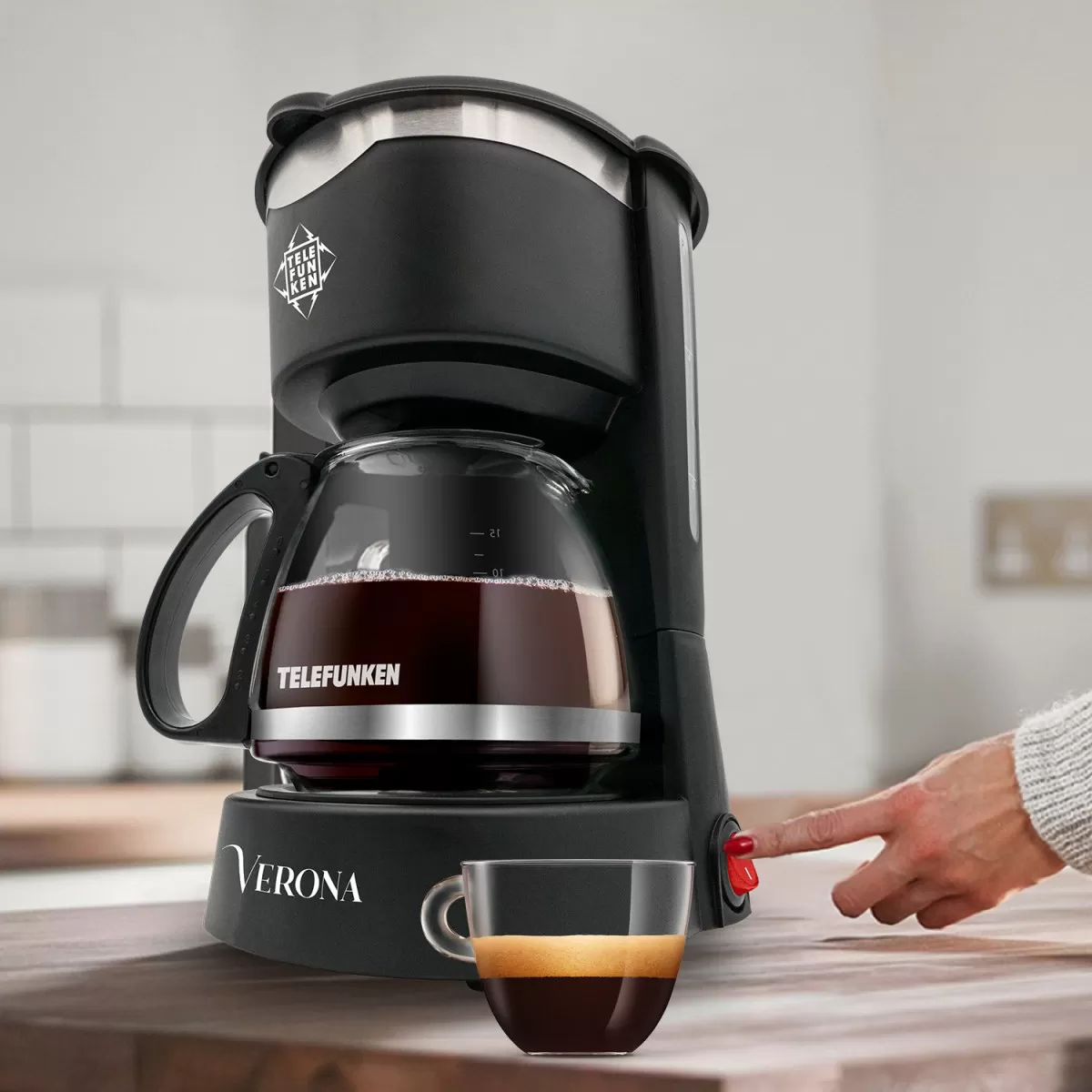 Disfrutá de un café perfecto en cualquier momento con la Cafetera Eléctrica Telefunken Verona 600ml. Su diseño compacto y funcional permite preparar hasta 4 tazas con rapidez y calidad. Cuenta con jarra de vidrio resistente y sistema antigoteo. Elegí Telefunken para potenciar tus pausas con sabor y eficiencia.