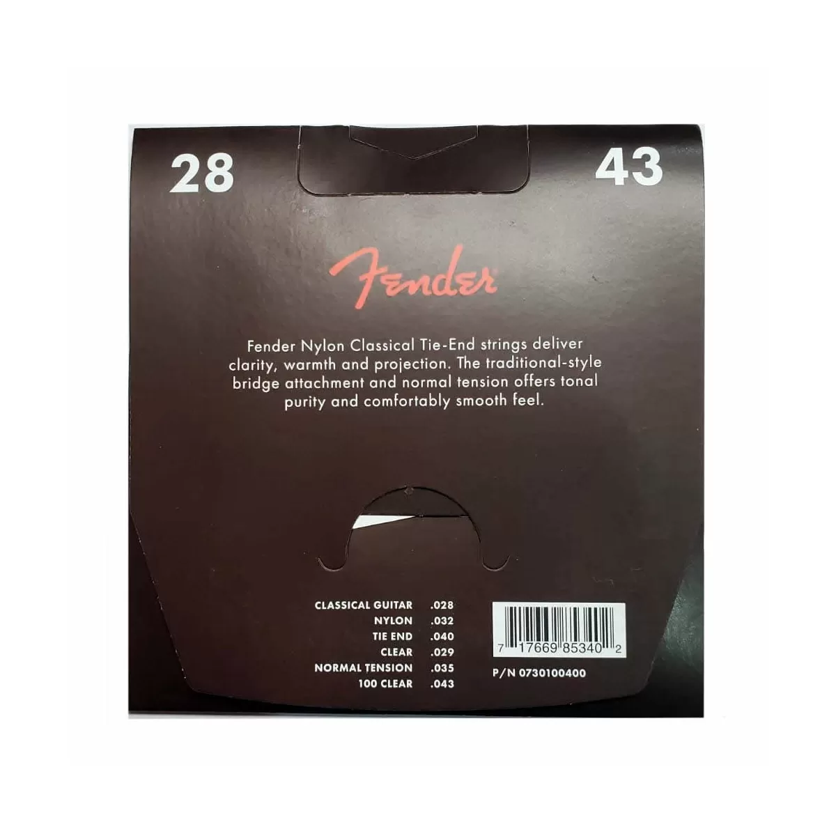 Las cuerdas Fender Clásicas de Nylon con terminación Tie End, proporcionan un tacto suave, cálido y con reducción del ruido de los dedos. Su tensión normal se proyecta óptimamente para hacer que tu voz se escuche. Extremo de amarre en forma de Corbata. Fabricadas en Estados Unidos.