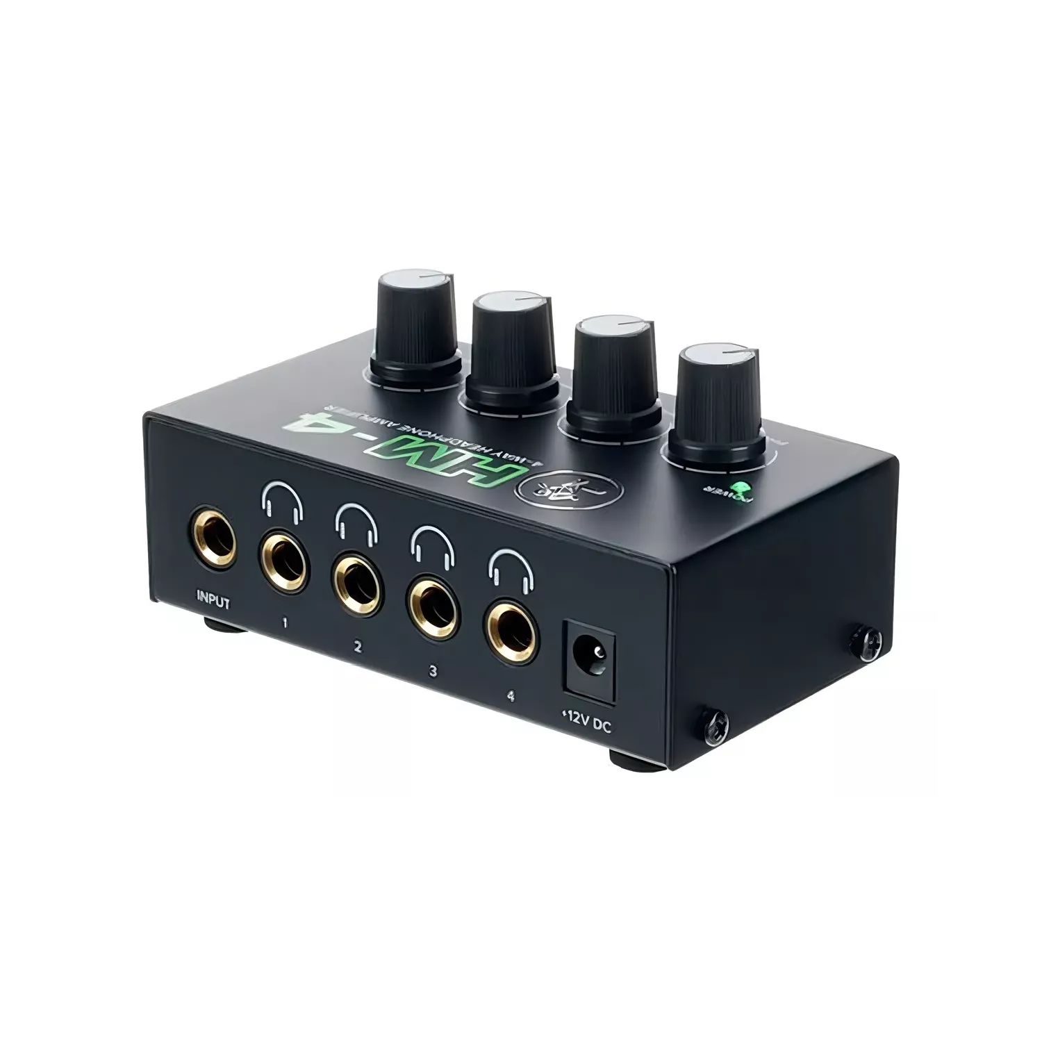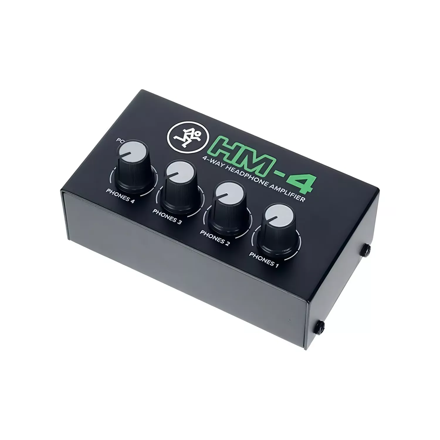 El Mackie HM-4 es un amplificador de auriculares de 4 salidas, diseñado para ofrecer una solución simple, confiable y de alta calidad en entornos de grabación y monitoreo. Cuenta con una entrada estéreo TRS de 1/4″ y cuatro salidas de auriculares, cada una con su propio control de volumen, permitiendo que varios usuarios monitoreen al mismo tiempo sin pérdida de señal.