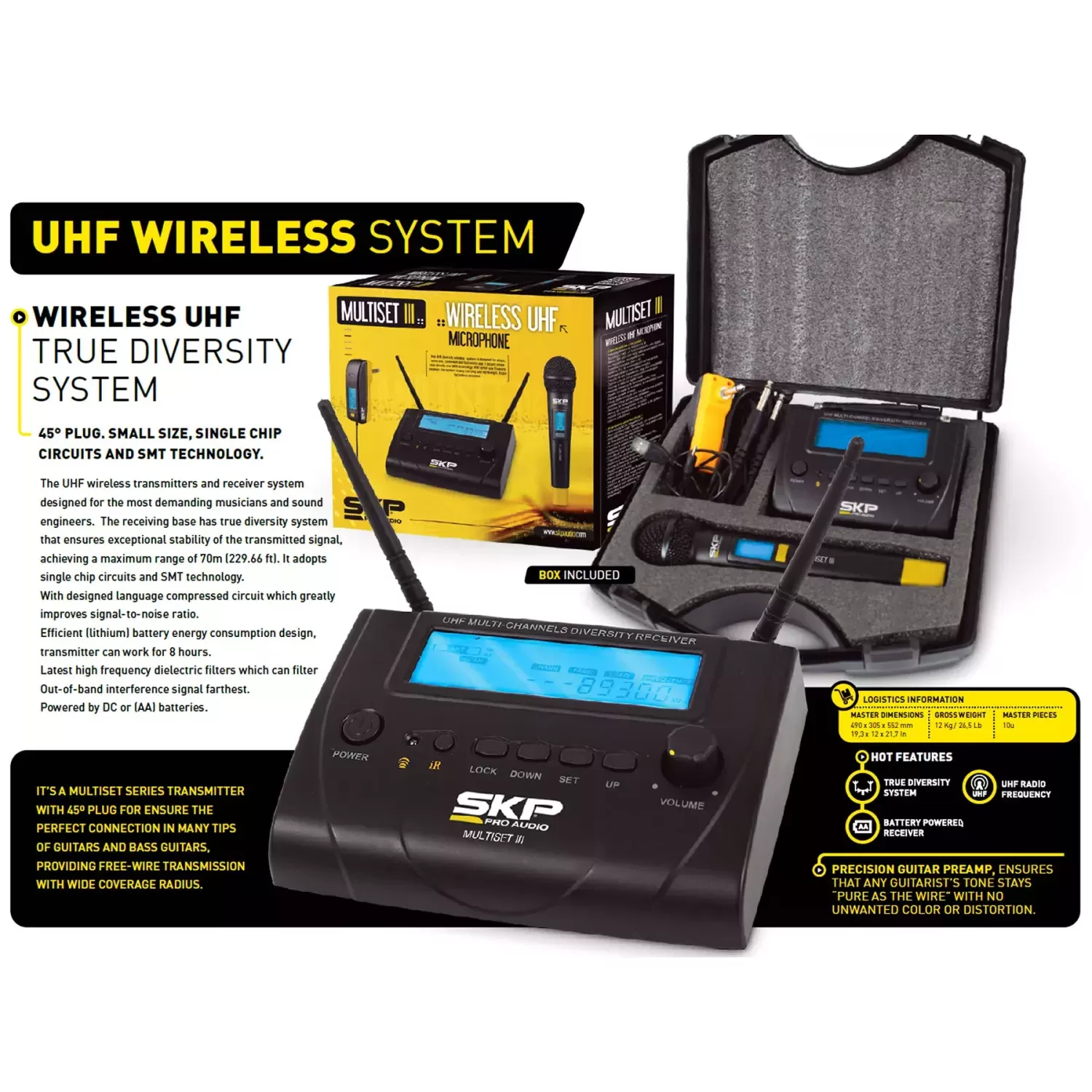 SKP MultiSet-III – Sistema Inalámbrico UHF con Micrófono de Mano y Transmisor para Guitarra