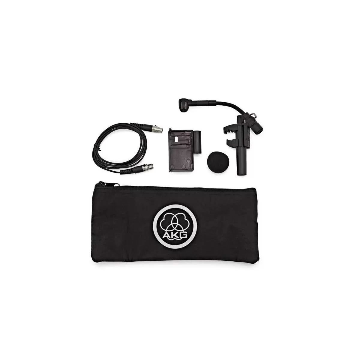 Su cuello de ganso con estabilizador mantiene la posición exacta del micrófono, mientras que su cápsula cardioide rechaza eficazmente el sonido ambiente y la interferencia de instrumentos cercanos. Incluye salida mini-XLR y adaptador A400 para conexión inalámbrica con transmisores de petaca AKG (PT40/45/450/470).