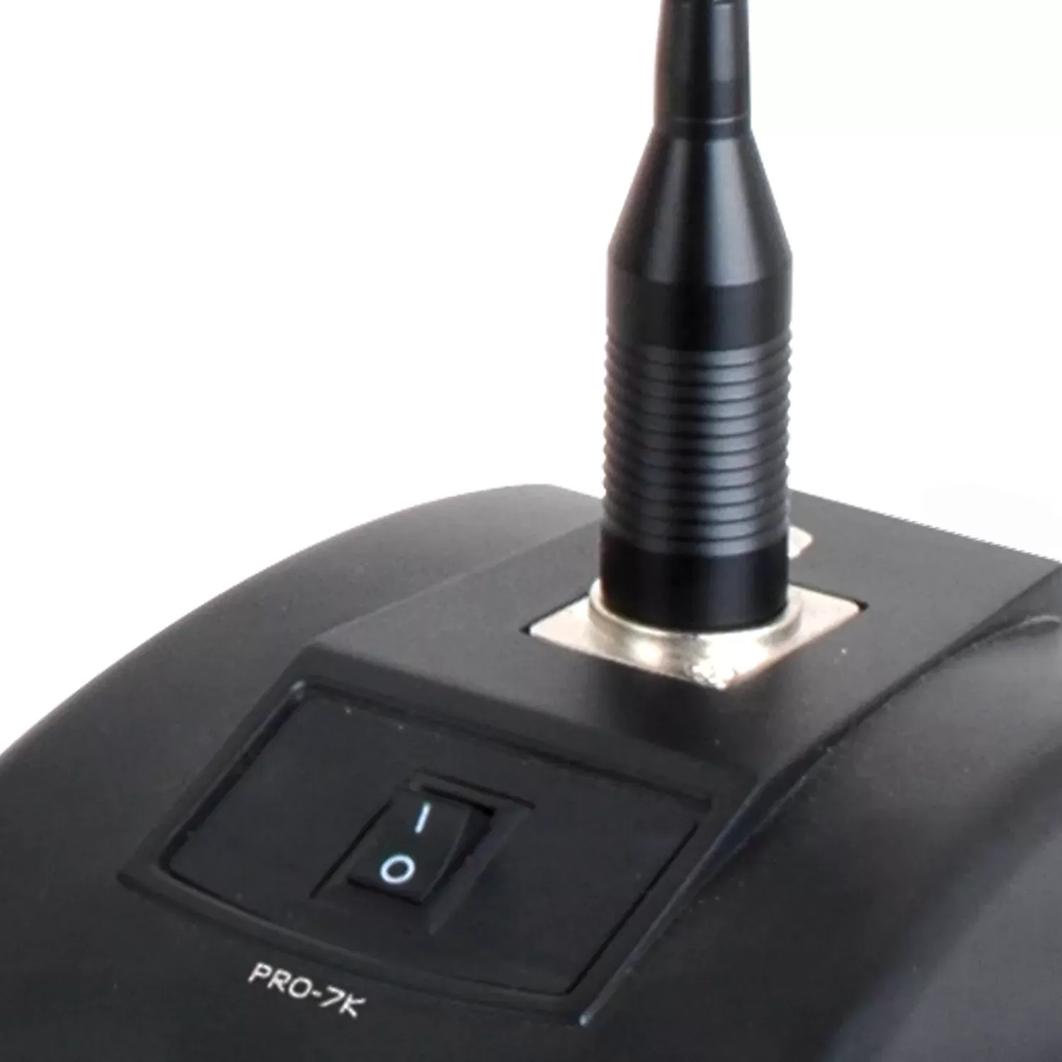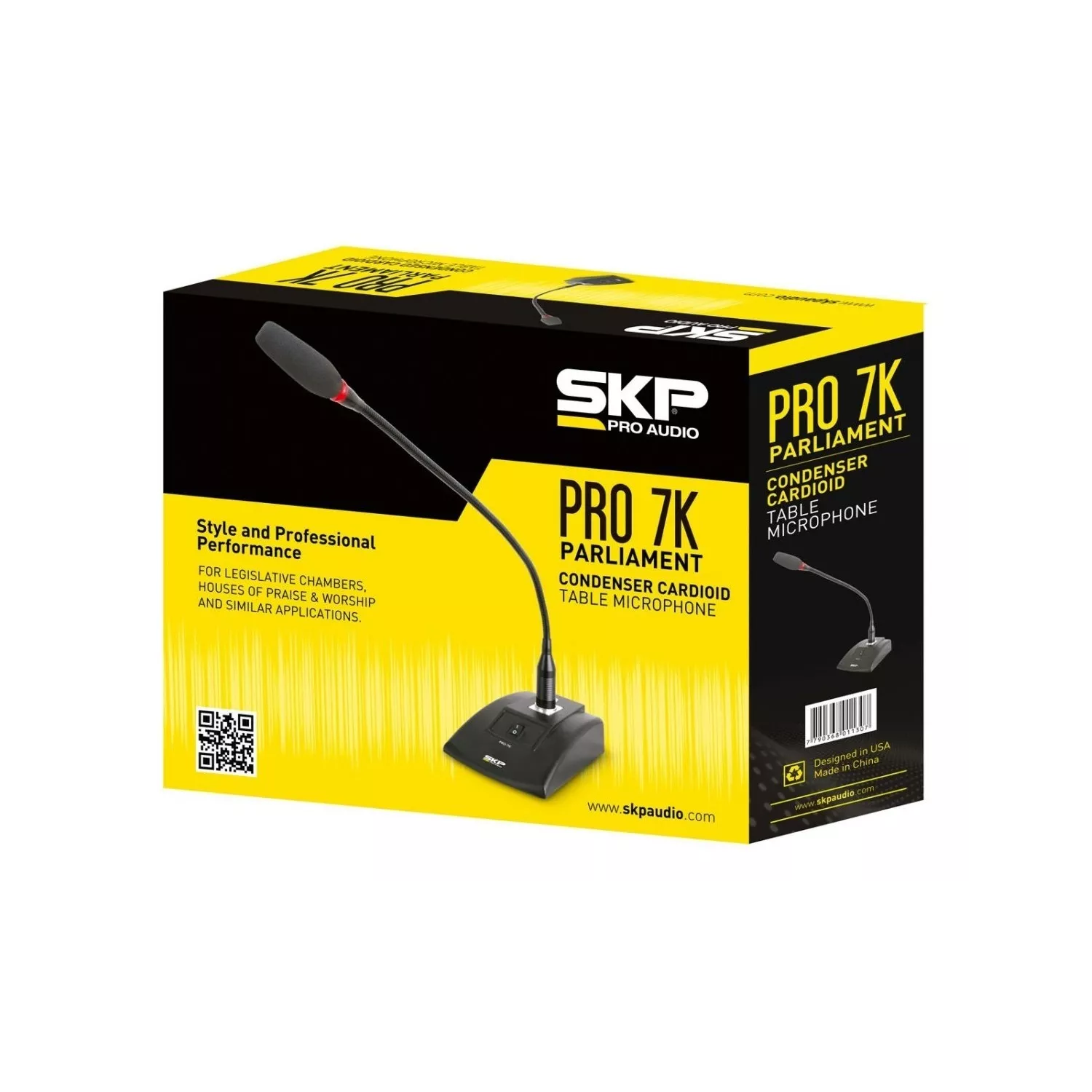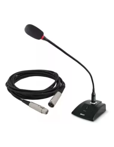 Microfono de Mesa Cuello de Cisne SKP PRO 7K Parliament para Conferencias con Tallo flexible y Anillo de luz. Interruptor ON/OFF. Incluye Cable de 5mts con conector XLR Balanceado. (Canon). Incluye Valija o Estuche de PVC Rígido para Guardado y Transporte.