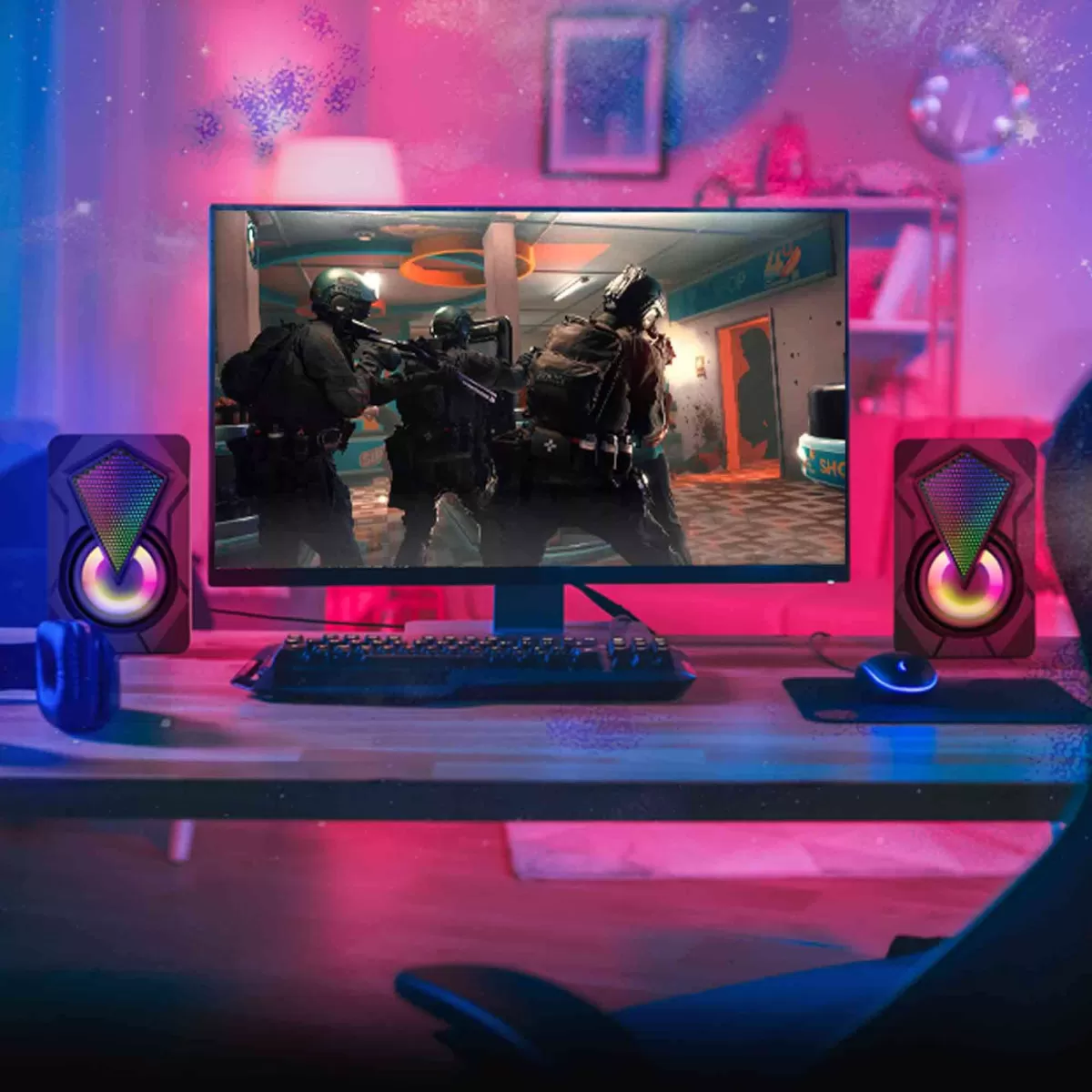 Parlantes Gamer TARGA Diamond X – Compactos con Luces RGB