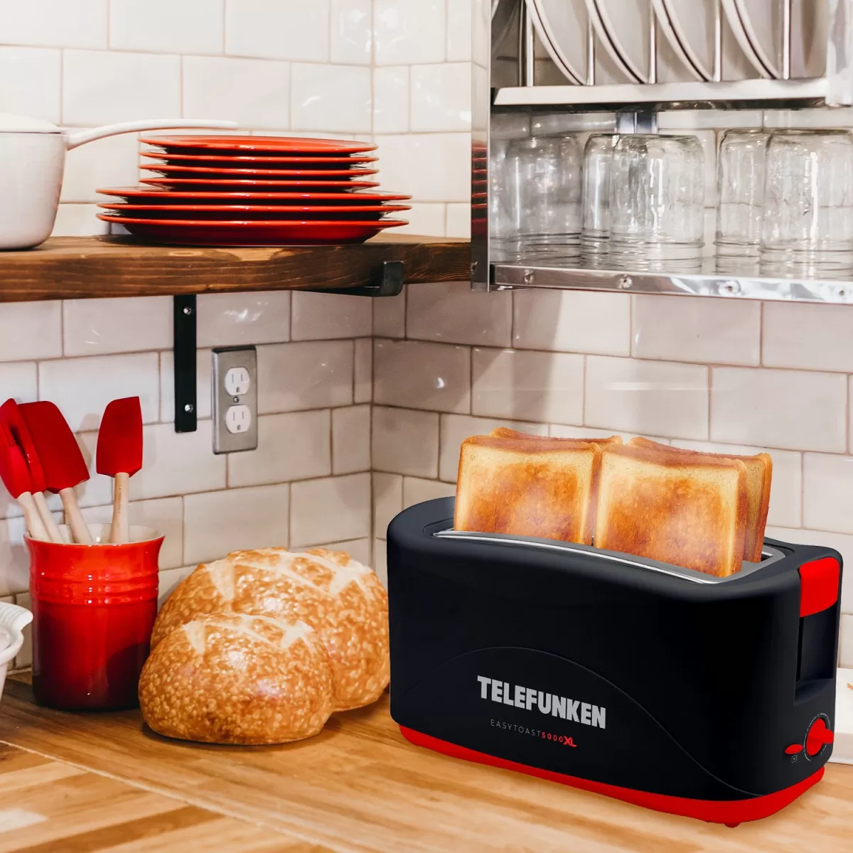 La Tostadora Telefunken EasyToast-5000XL está diseñada para los que no quieren esperar. Gracias a su gran capacidad de 4 tostadas, su potencia de 1600W y su tecnología Fast Heating™, obtendrás tostadas crujientes y calientes en segundos. Ideal para familias, tiene 7 niveles de tostado, función 3 en 1 (tostar, calentar, descongelar), y una bandeja recogemigas removible que simplifica la limpieza diaria. Combiná practicidad, potencia y estilo en tus desayunos con esta tostadora de alto rendimiento.