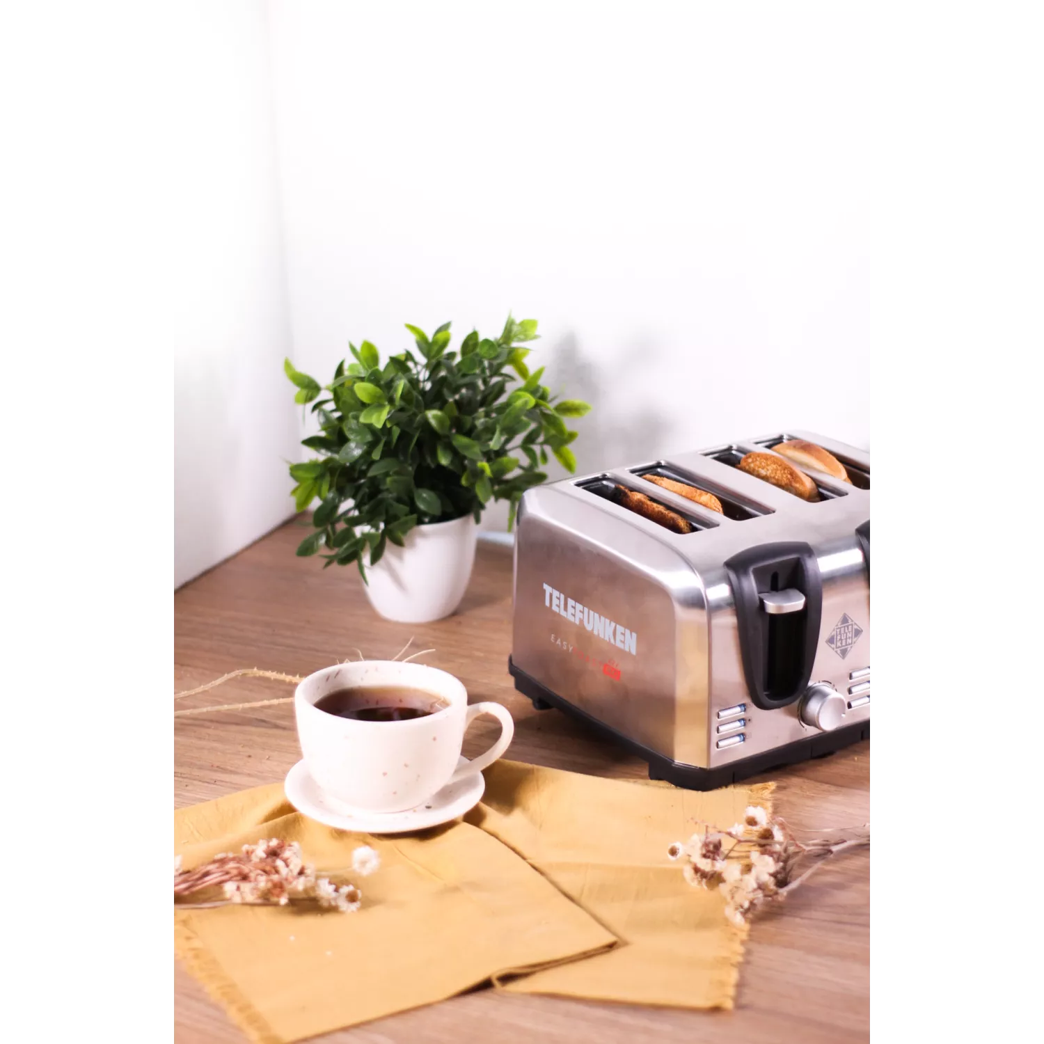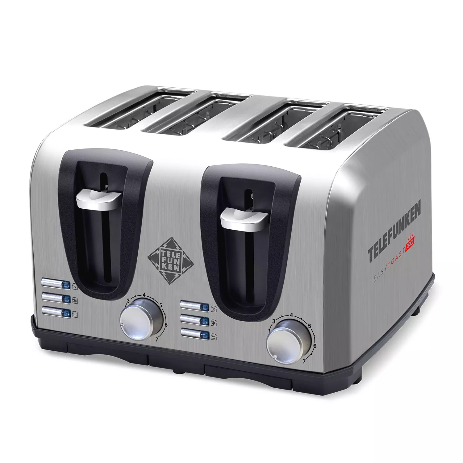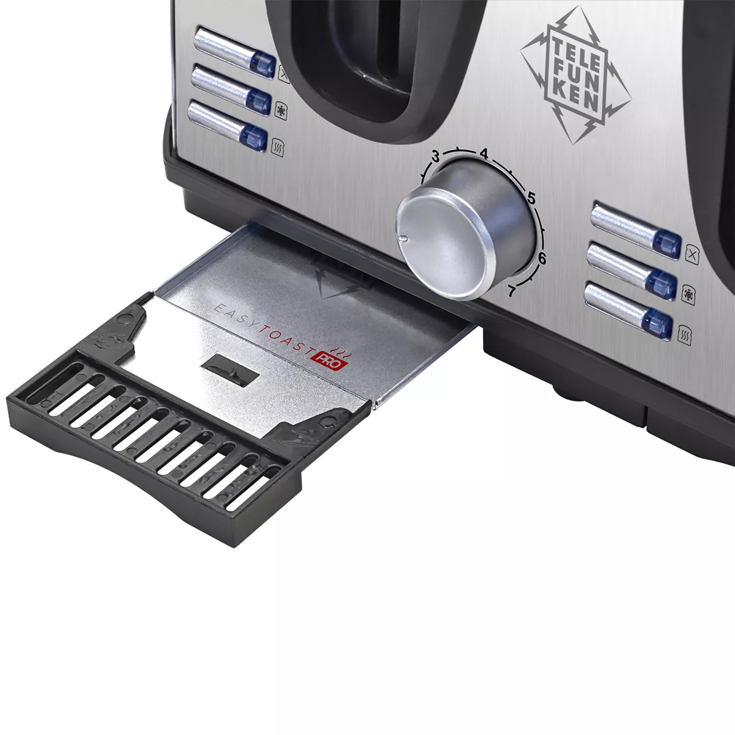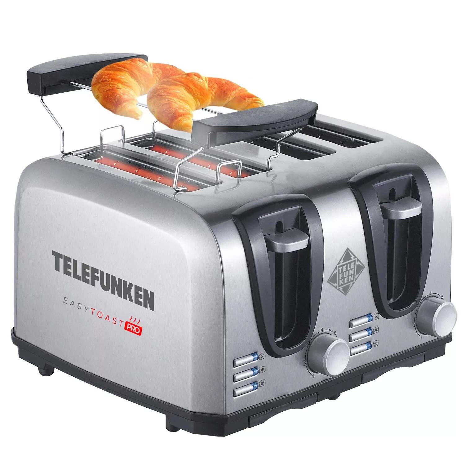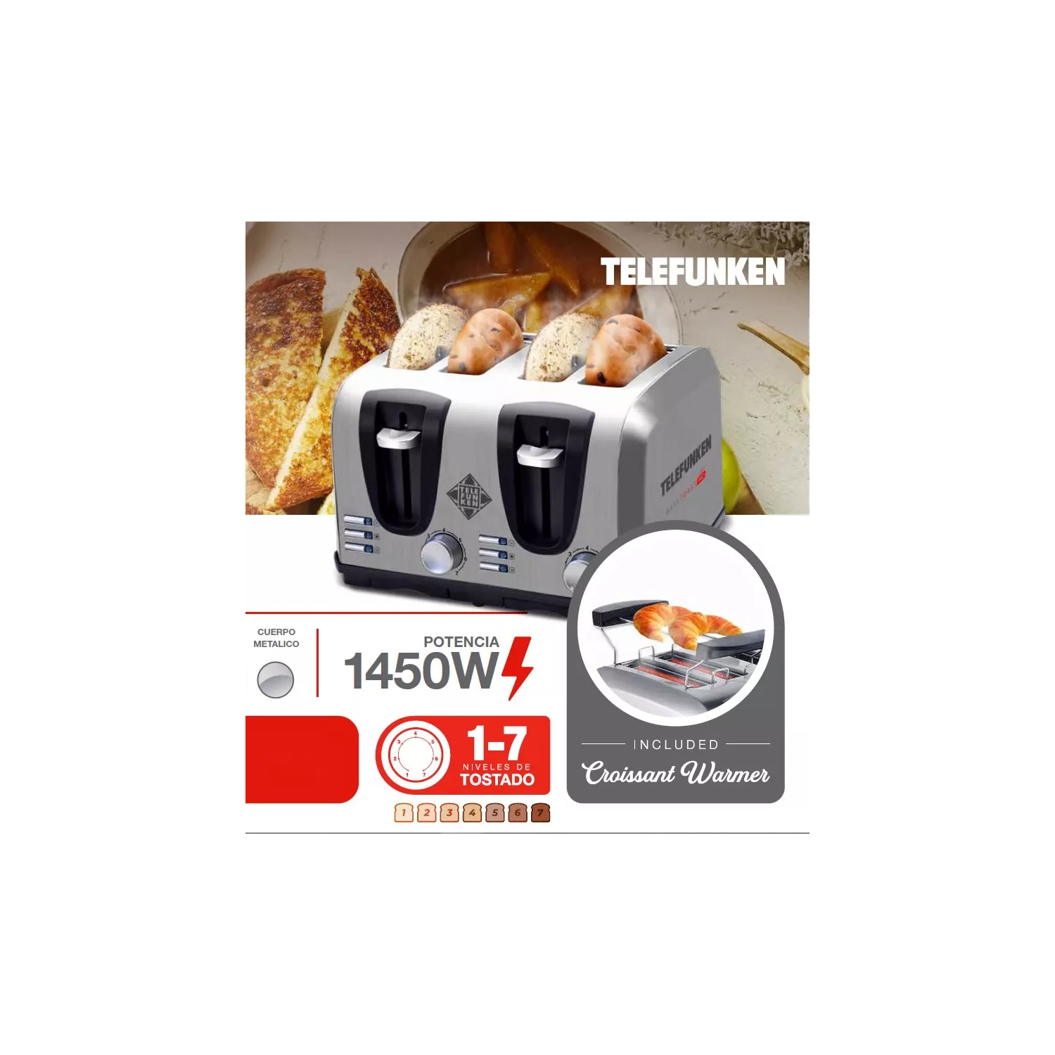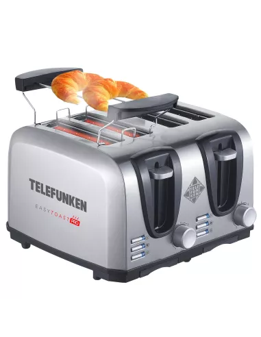 La Tostadora Telefunken EasyToast-PRO está pensada para los que buscan diseño, funcionalidad y potencia. Con capacidad para 4 tostadas, cuerpo metálico resistente, 1450W de potencia y selector de 7 niveles de tostado, ofrece resultados perfectos y personalizados en cada uso. Su tecnología Fast Heating™ acelera el proceso, mientras que Heat Dispersion™ garantiza un tostado parejo. Incluye 2 bandejas recogemigas removibles y soporte para calentar medialunas o croissants, ideal para disfrutar desayunos saludables y deliciosos todos los días.